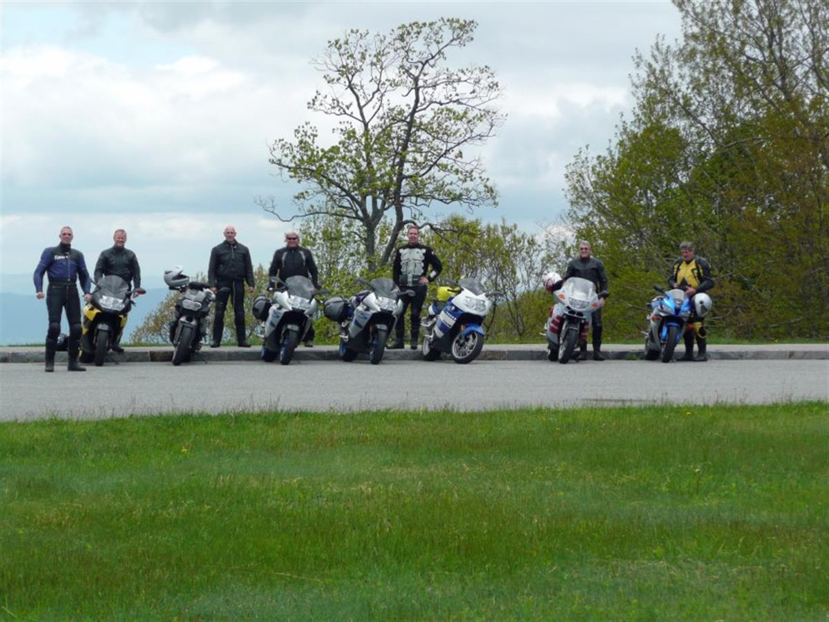The group on the Blue Ridge Parkway (Tom, Jim, Bill, Randy, Kevin, Jim, Wolfgang)