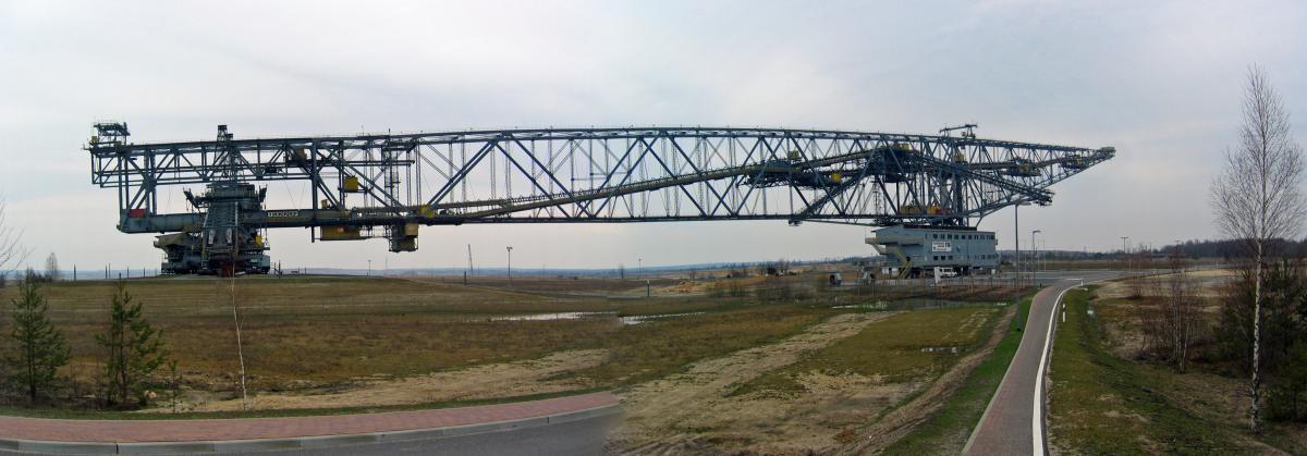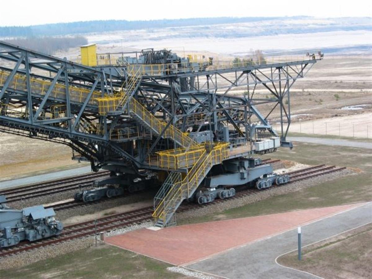 Short visit in the Lausitz mining area. In Senftenberg with the Lausitzring racetrack in reach there is a lot of lignite. Here you find the world's largest conveyor bridge for open-pit mining. And it is the world's largest movable machine too. More than 1500 ft long and 243 ft high. F60 is capable of removing a 60 m (180 ft) thick layer of waste on top of the lignite.