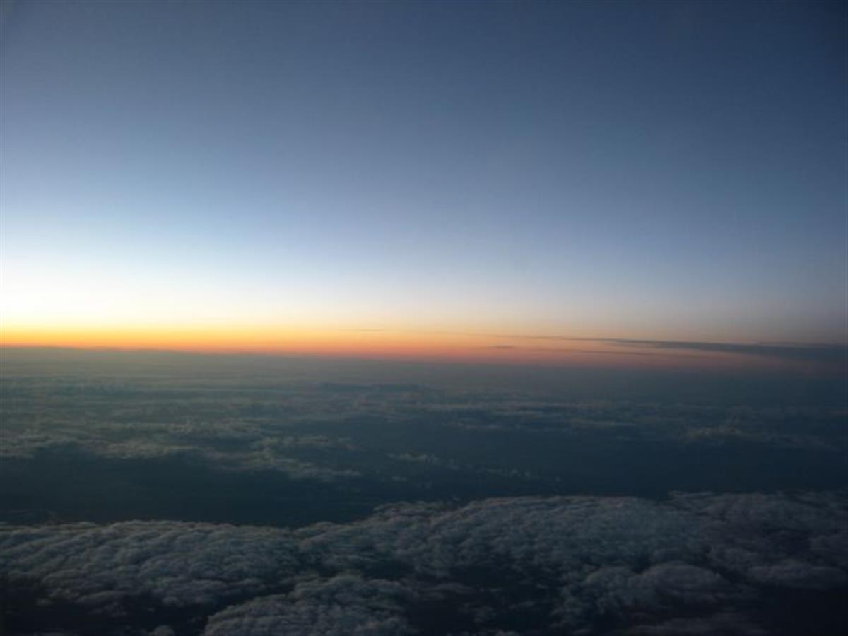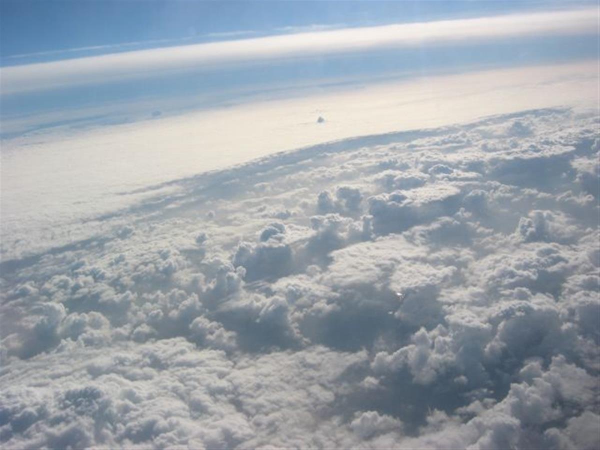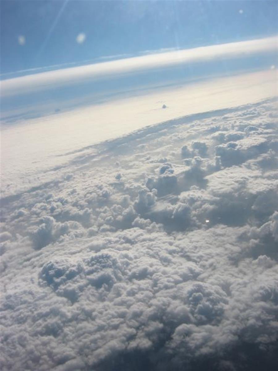 Cloud formations between Berlin and Frankfurt. The small bright spot is a lake reflecting the sunlight