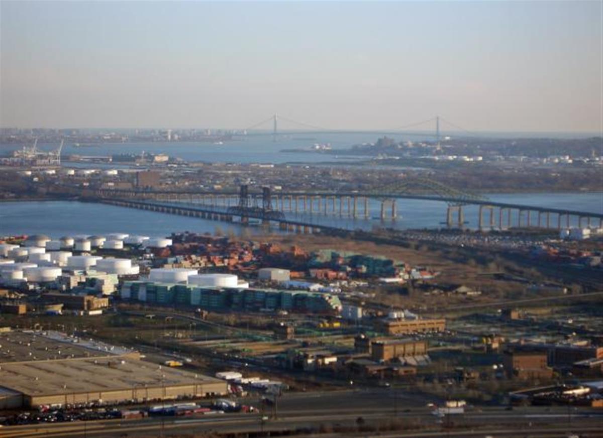 Verrazano Narrows Bridge behind New Jersey Turnpike Bridge