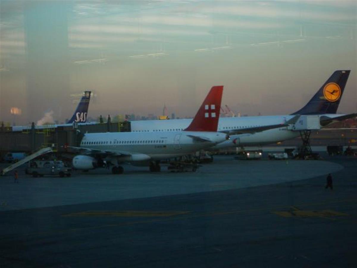 Touched down. Manhattan in the background behind a Private Air jet and our Lufthansa airliner