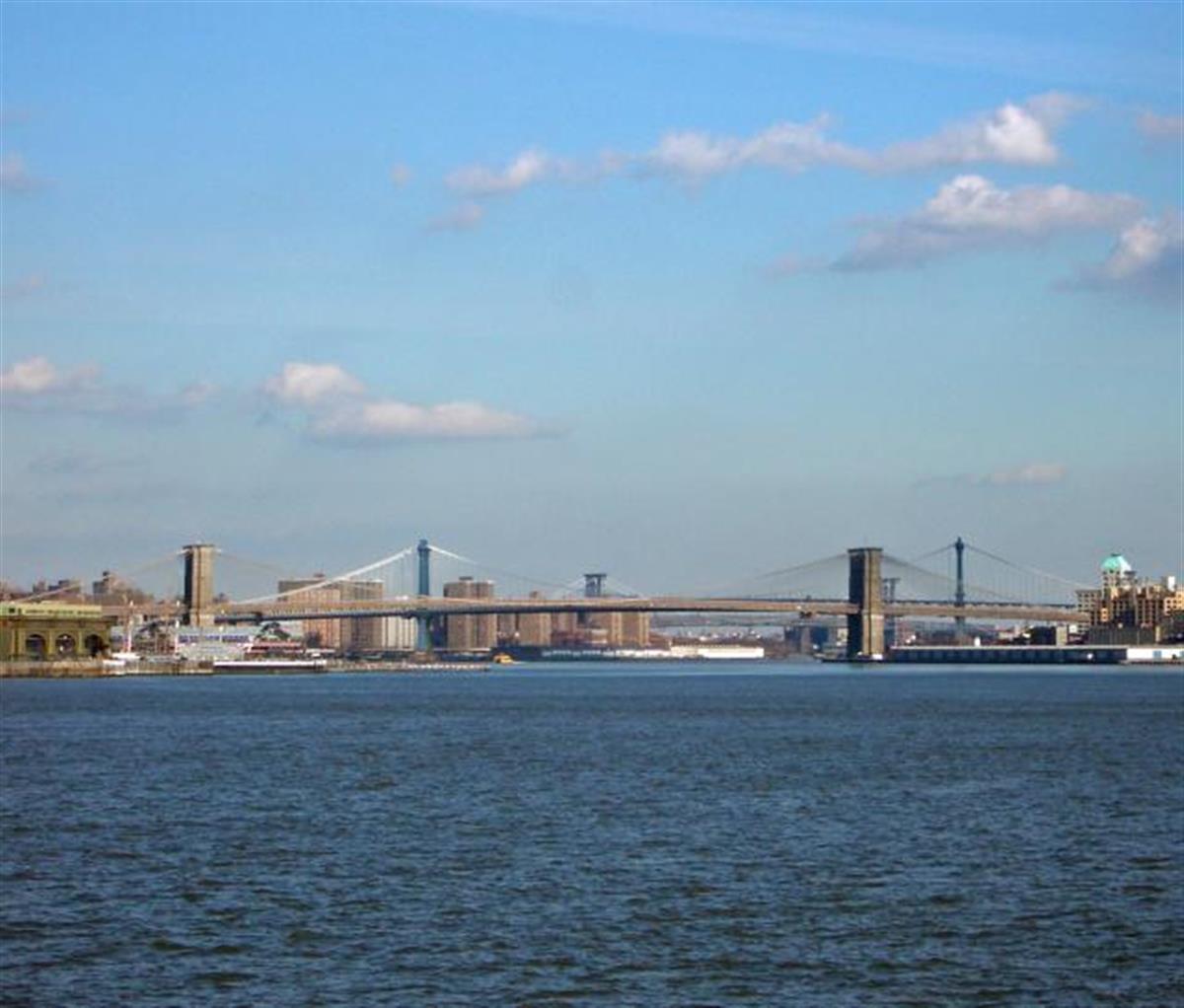The three big East river bridges Brooklyn Bridge, Manhattan Bridge and Williamsburg Bridge (from front to back)