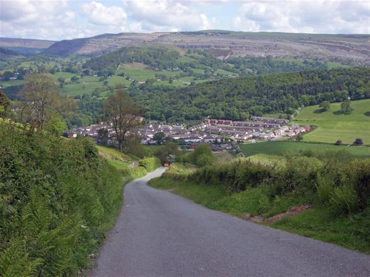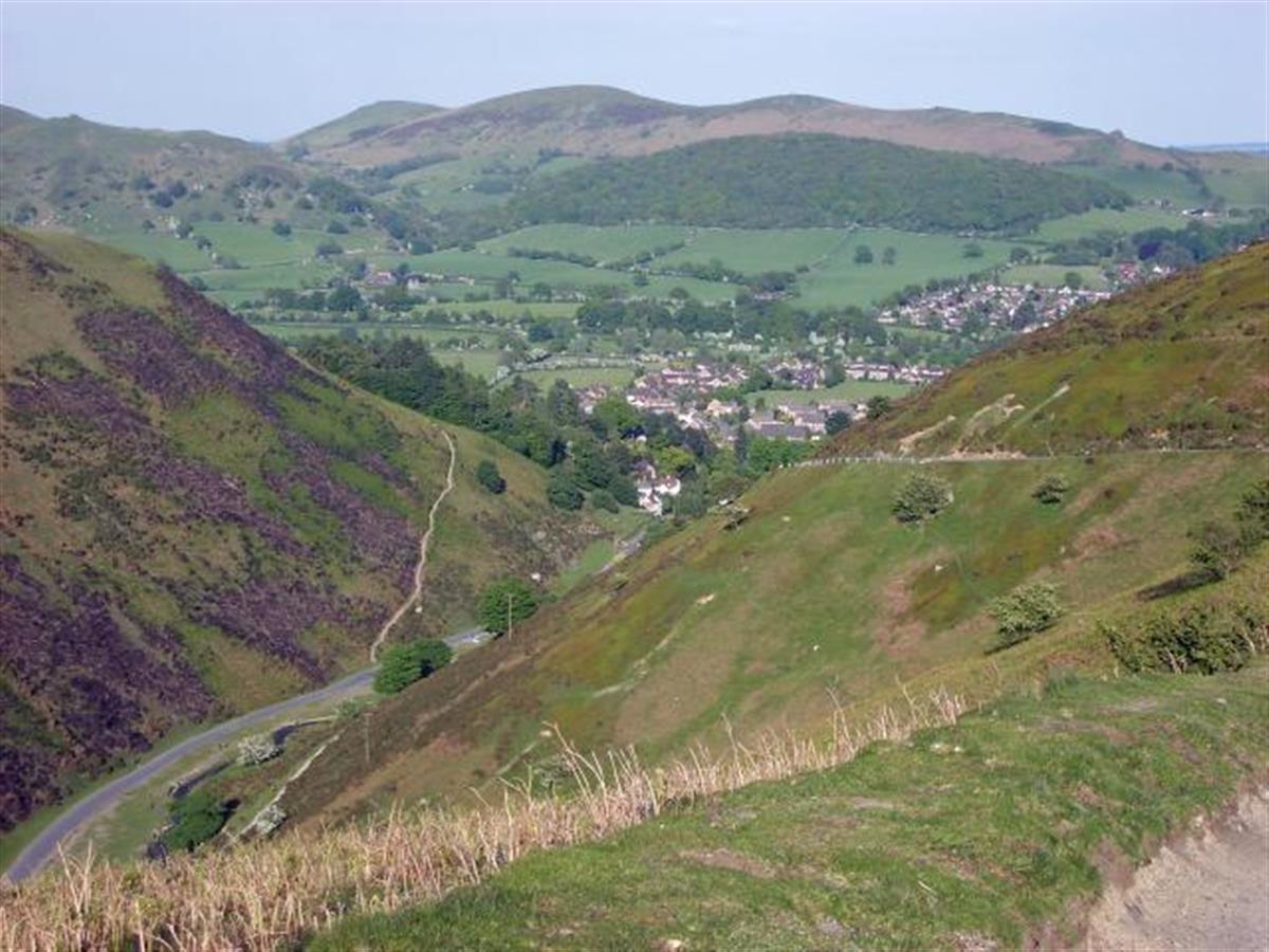 Llangollen, hometown of Debbie in the valley. On the opposite side the ruins of Dinas Bran Castle