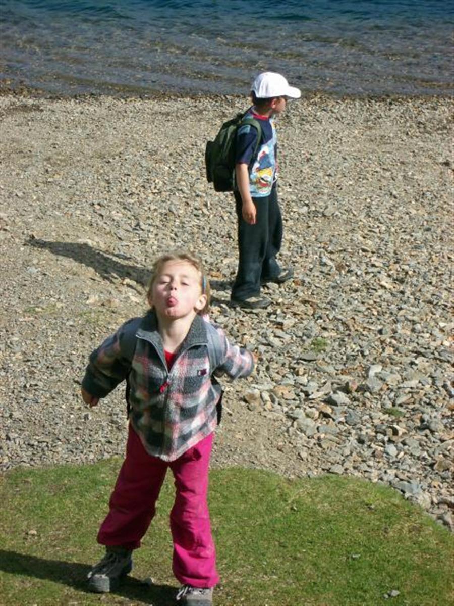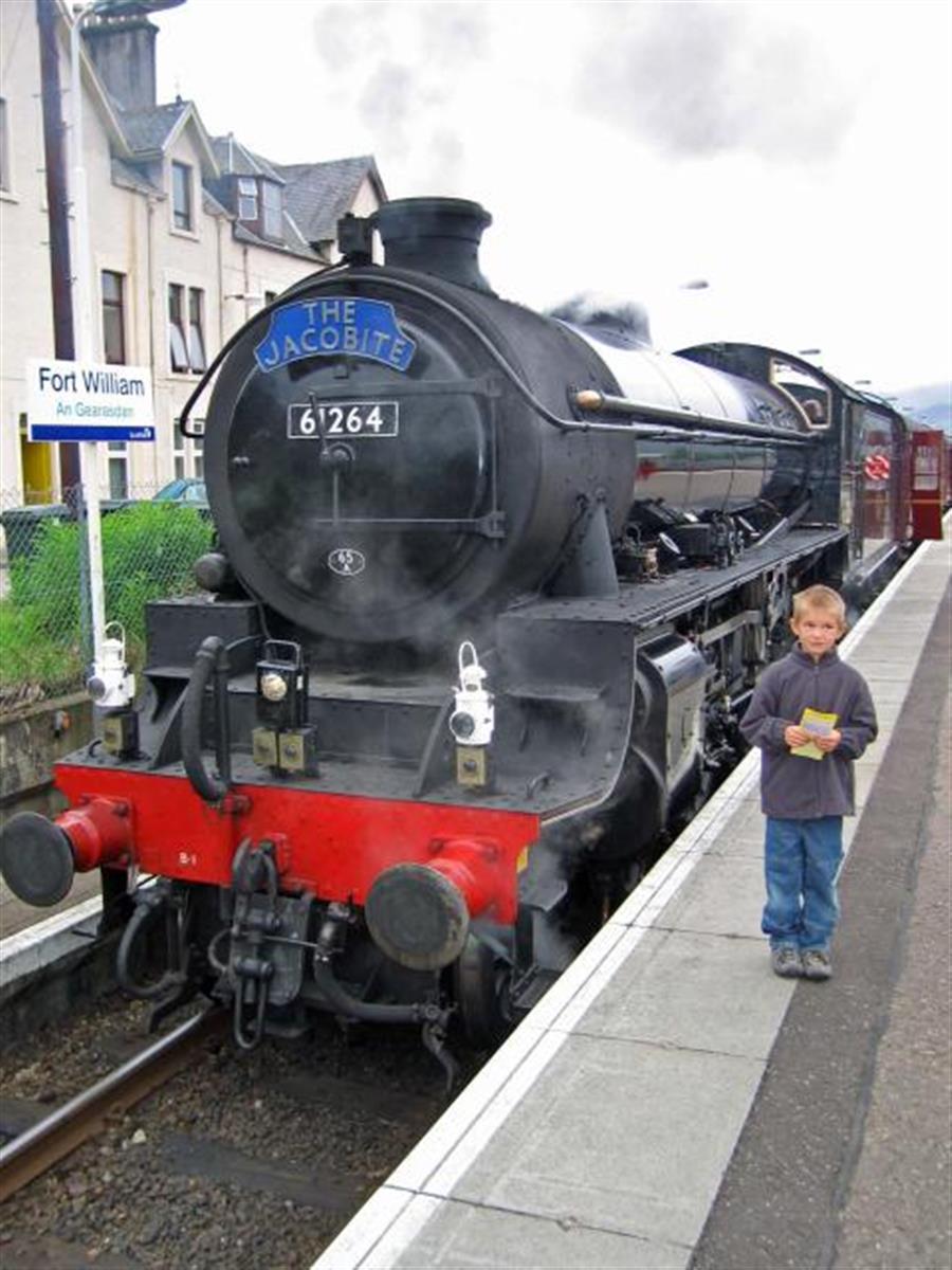 Jacobite Steam Train goes from Fort William to Mallaig. You can get out earlier. The train is know by everyone having seen Harry Potter. We decide to let Möni and Max ride one stop with the train and we collect them at this station.