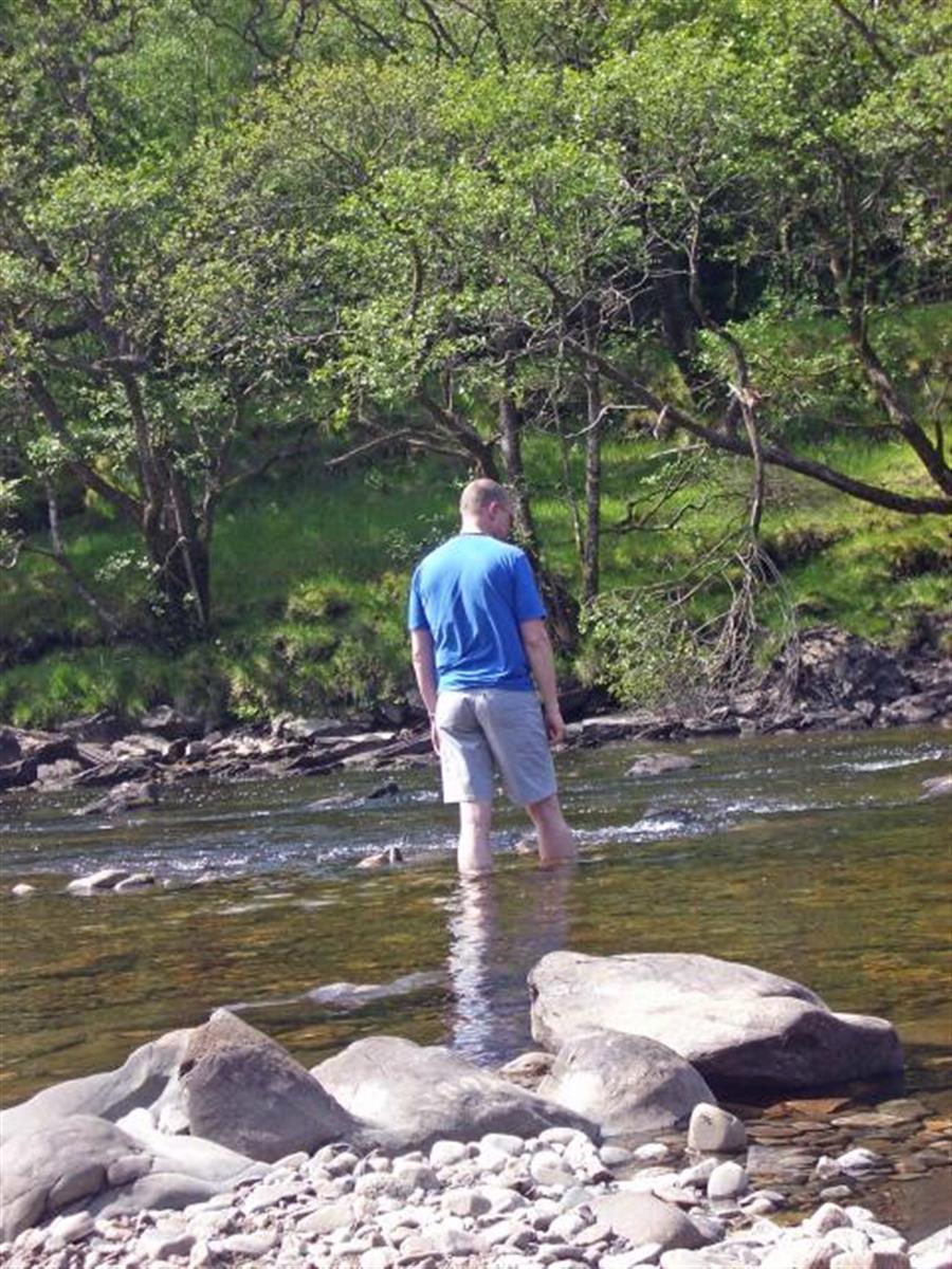 Glen Orchy is a small river in a very scenic area and offers good opportunities for a swim. We needed it in this warm weather