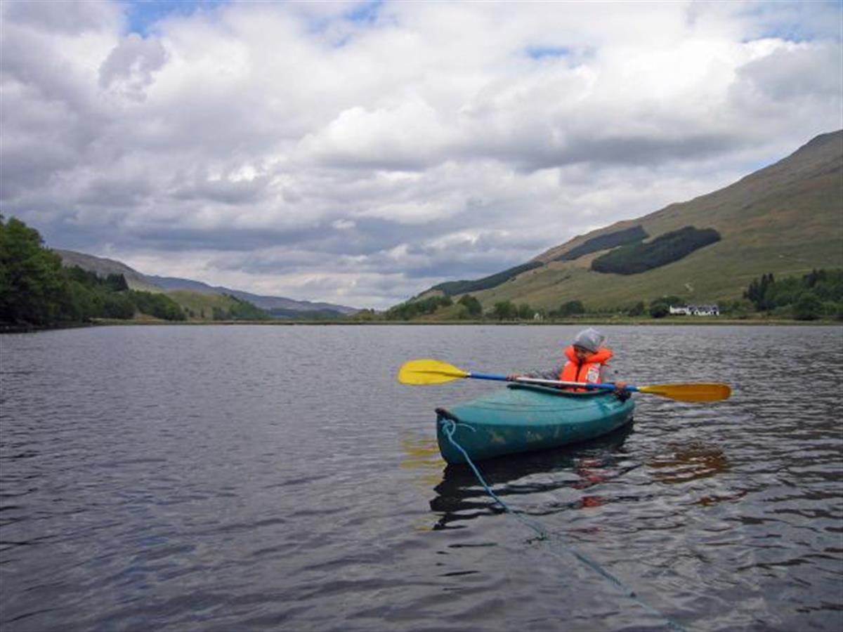 In Crialarich I have meet friends who have had a week of Scotland holidays already. We will have another week in a small cottage in a resort called Portnellan next to Glen Dorchart below Ben More. So I have named the most important geographic words: Glen, Ben and Loch are river, mountain and lake. We learn quite quickly that many lochs are indeed sea bays with tides. The resort is quite extensive with it's own stream and a nice view to Ben More. The mountain is 1174 m (3852 ft) high - almost the same elevation as Mount Snowdon)