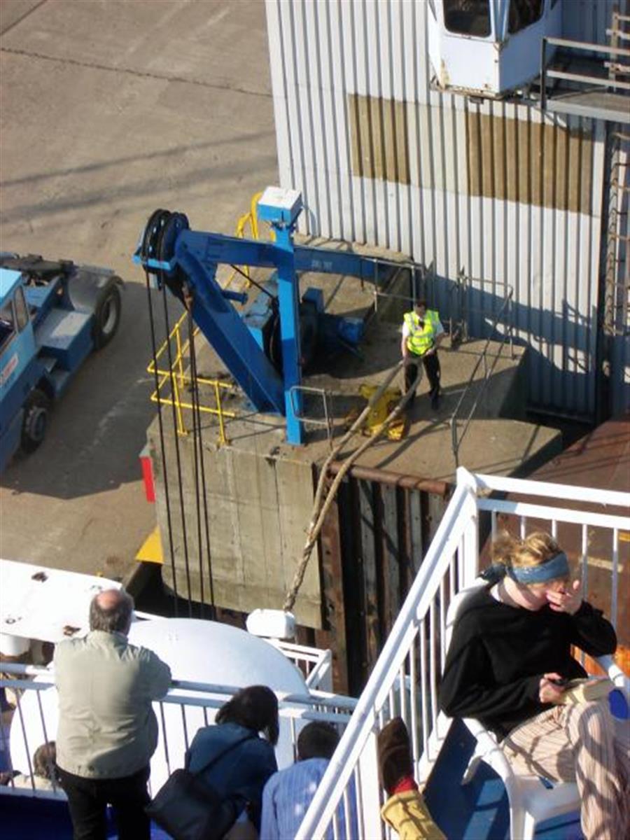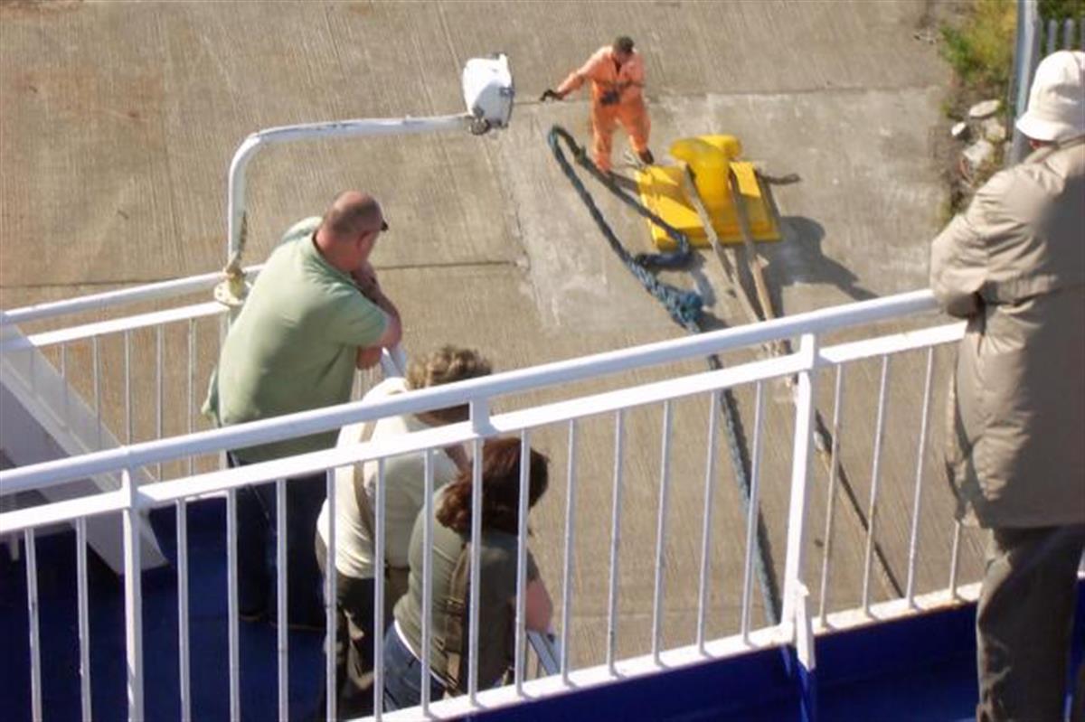 Departure requires an experienced captain. The ferry turns around in the narrow dock in between two other boats with the rear still tied