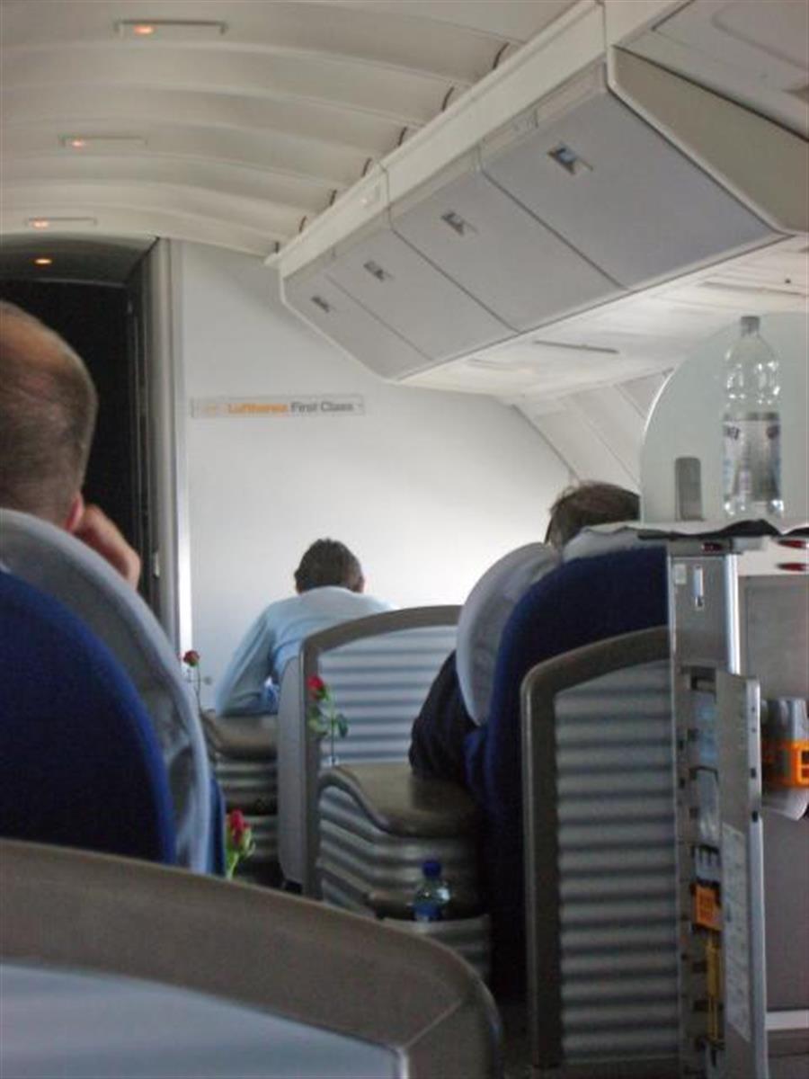 In the beginning a pleasant surprise. Lufthansa needed to upgrade us to First Class. Quite comfortable but it would have been much more useful on the flight back.