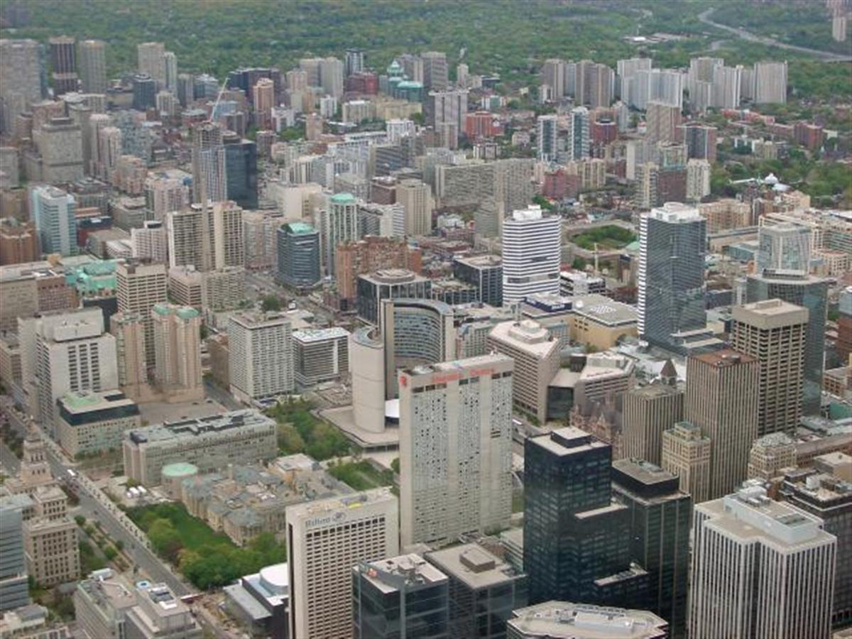 View to Toronto with Lake Ontario behind it. The lake has about half the size of the Baltic Sea