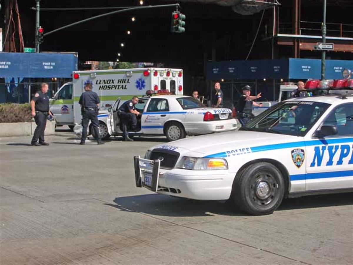 We pass Columbus Circle and both towers of Time Warner Center. Below somewhat lost the columbus monument.