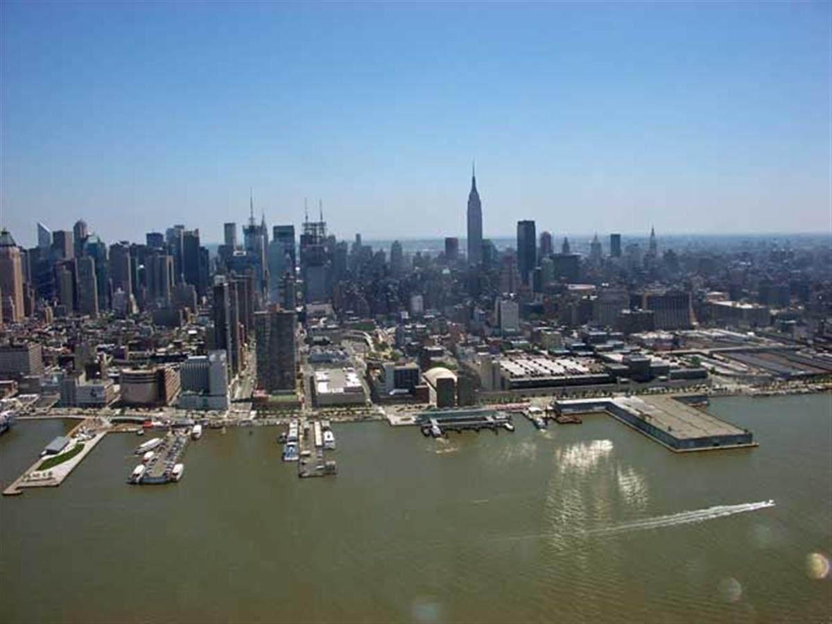 View to Hudson River 57th Street. Lucas lives in the bright tower block.