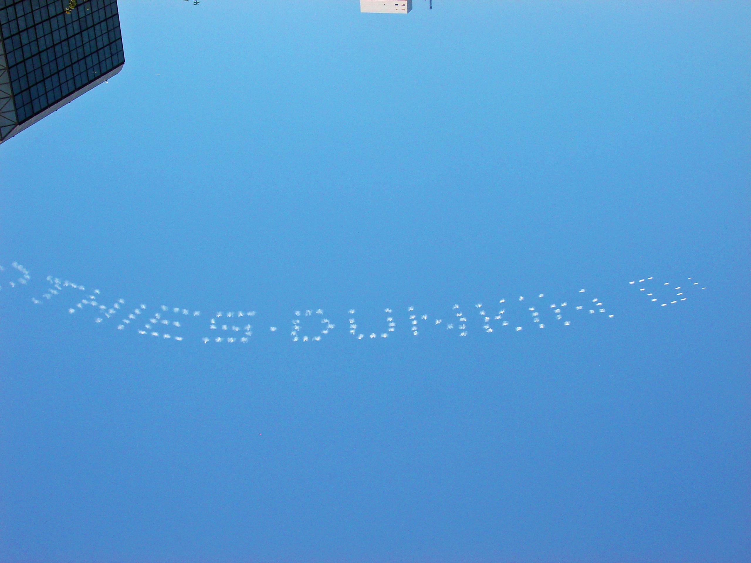 Back on earth after this amazing flight we see the sky getting written with ads like with an ink printer.