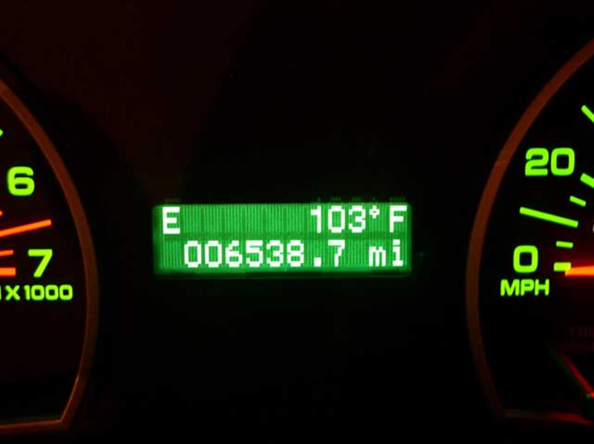 Outside temperature display in the car shows suprising value. 103 Farenheit is about 40 Celsius.