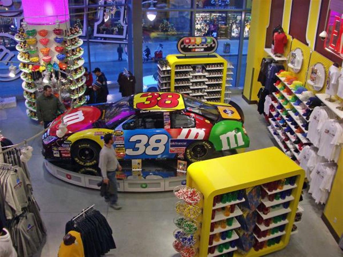 The shop offers all kinds of merchandise related to m&m: Clothes, toys, stuff, m&m color separated and in certain mixes, do your own mix, and all sizes of m&m candy.
