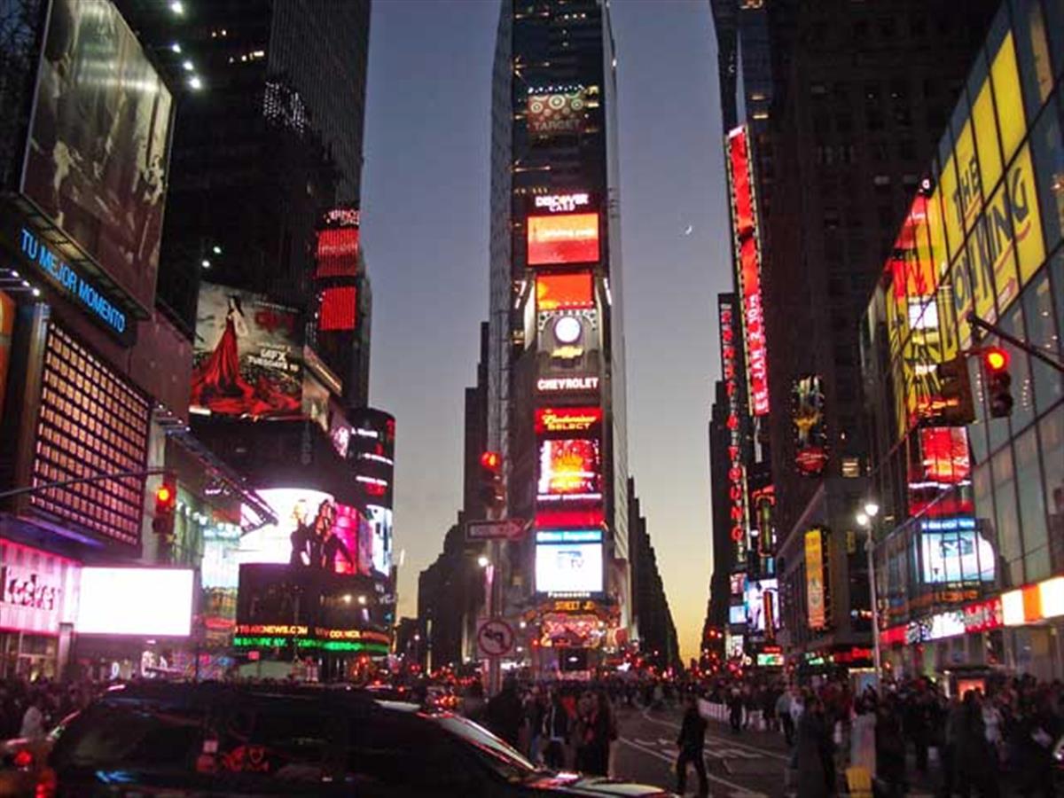 Back to Times Square. It gets dark and the lights are glowing. And masses of people are moving around.