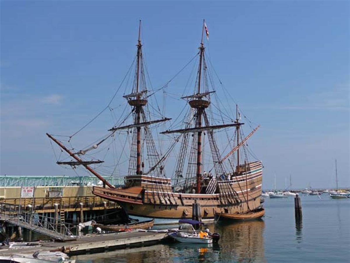 There is a rebuild of the Mayflower in Plymouth. This is a boat which brought the first colonialists of New England to America.