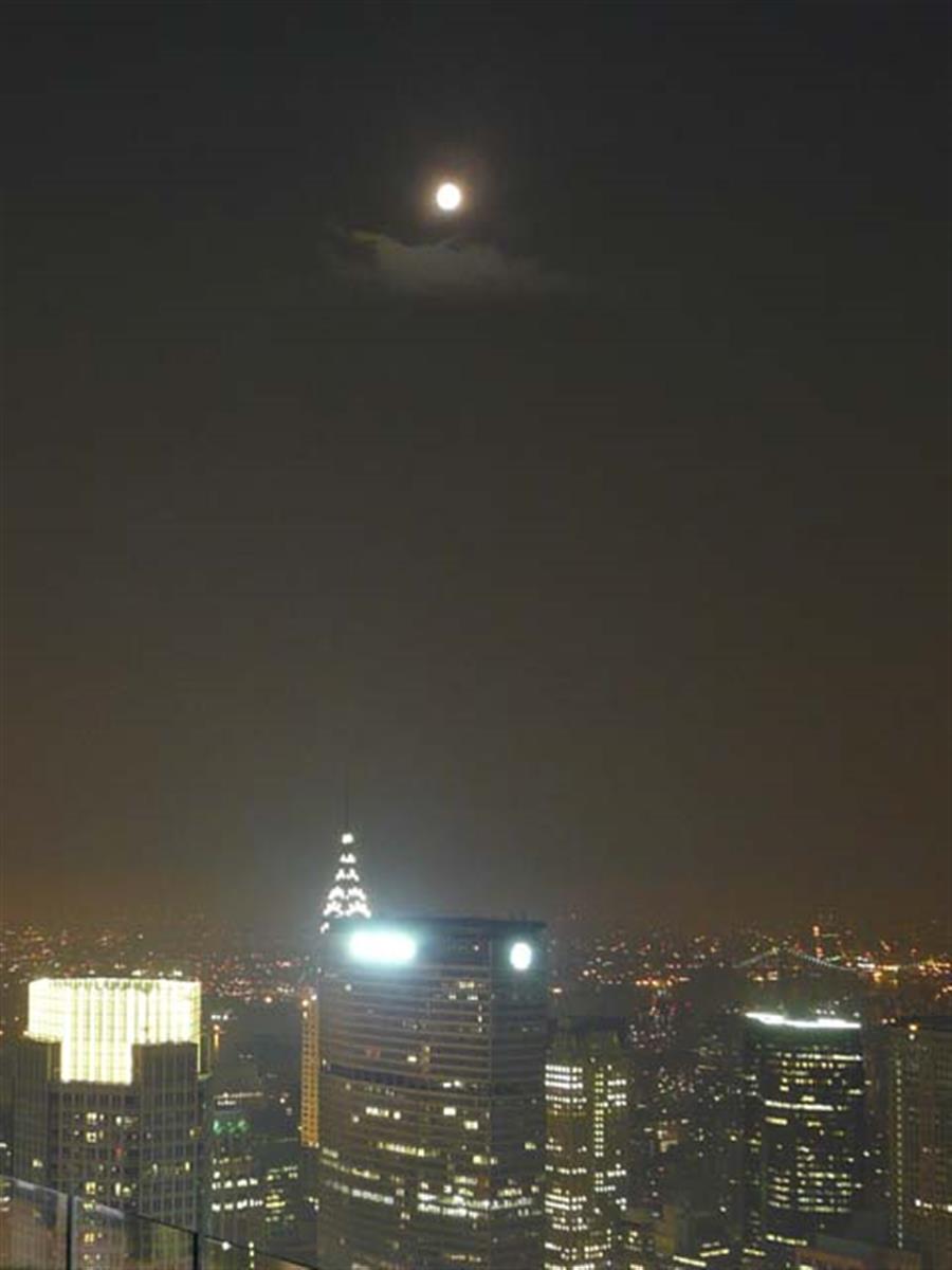 Moon over Chrysler Building (slightly conceiled by MetLife Building)