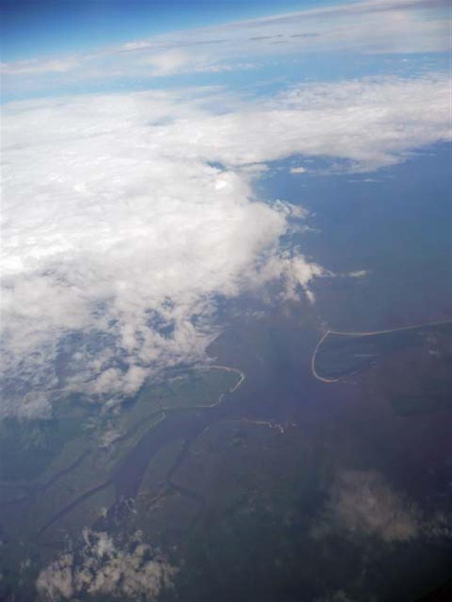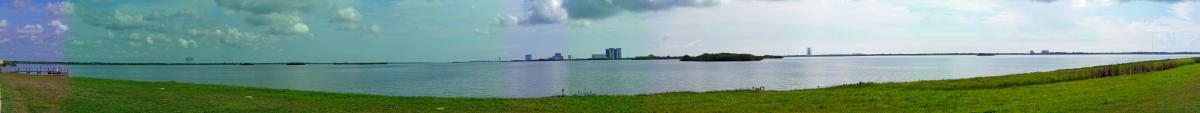 View over Cape Canaveral, an upstream island where the launch facilities for unmanned flights are located