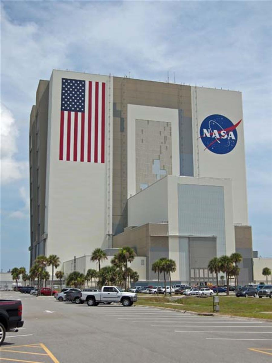 Vehicle Assembly Building - this is where the Space Shuttles get prepared for their flights. The get mounted onto a mobile launch platform and will then be dragged to the launch pad. The building is huge and according to the guide the second biggest building in the world with regards to the volume.