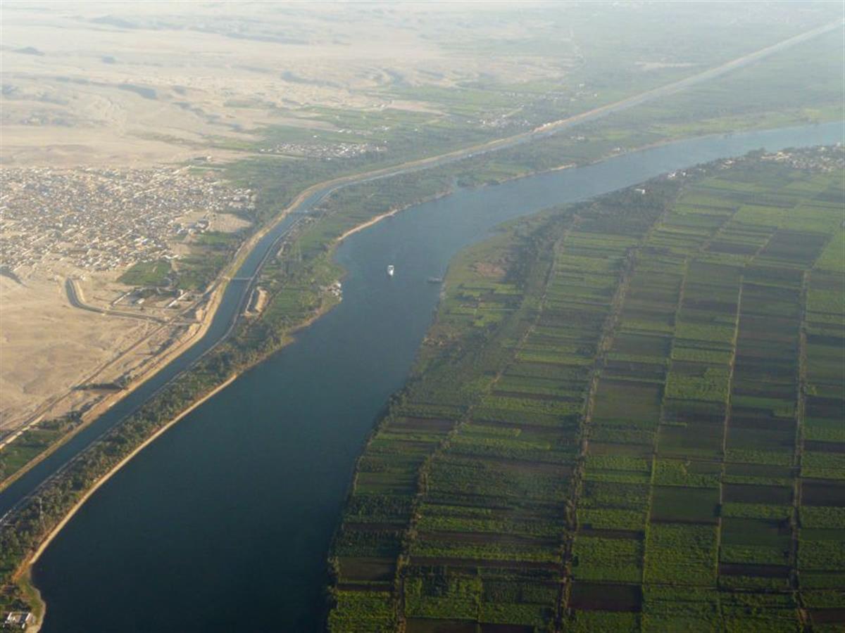 River Nile. One can see all the irrigation canals glimmering in the sun