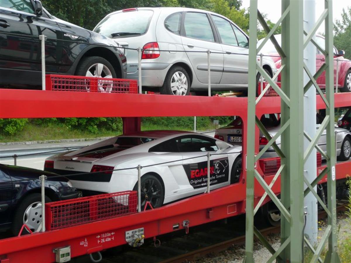 Another interesting car on the train. It took the (obviously quite unexperienced) driver about ten minutes to get the Lamborghini into it's place.