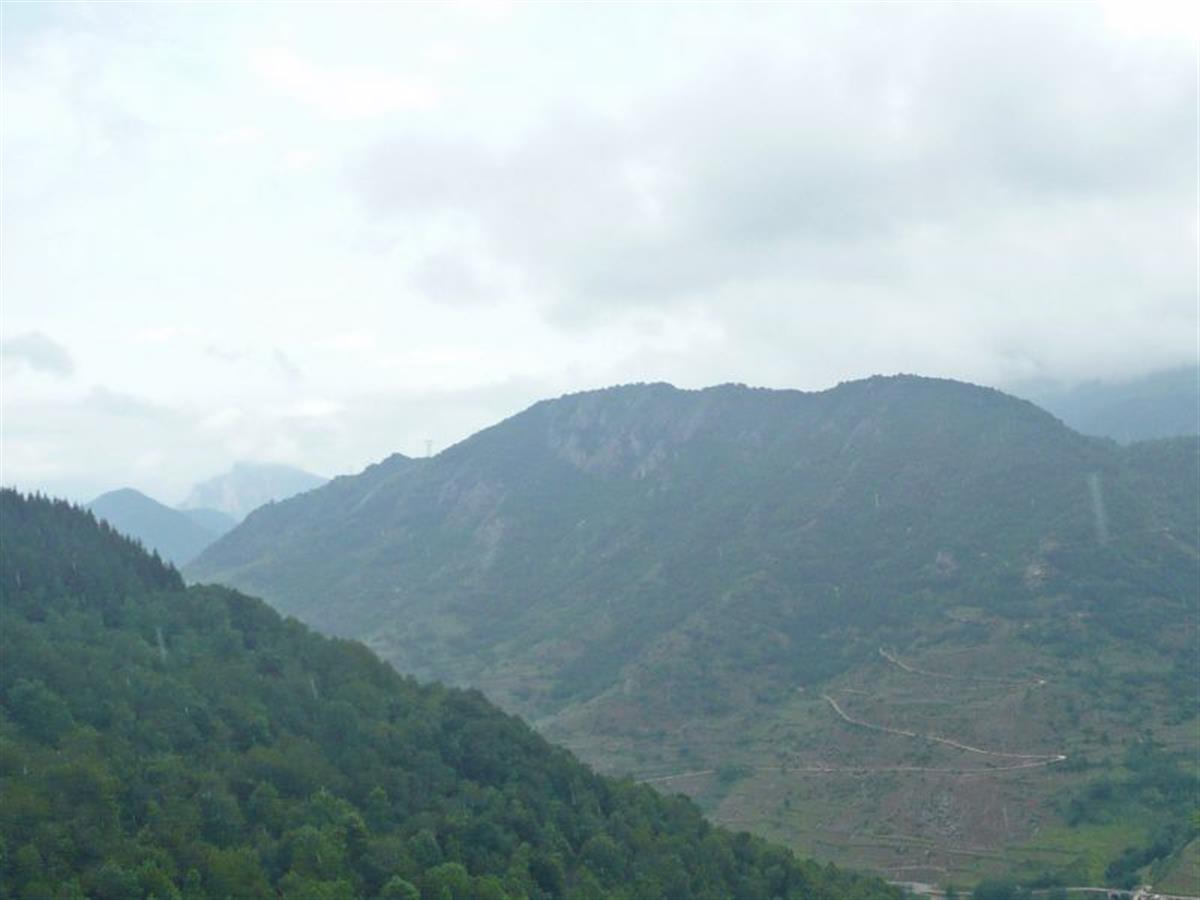On the way up to the last pass this day. Weather has changed again to overcast sky and some wet roads