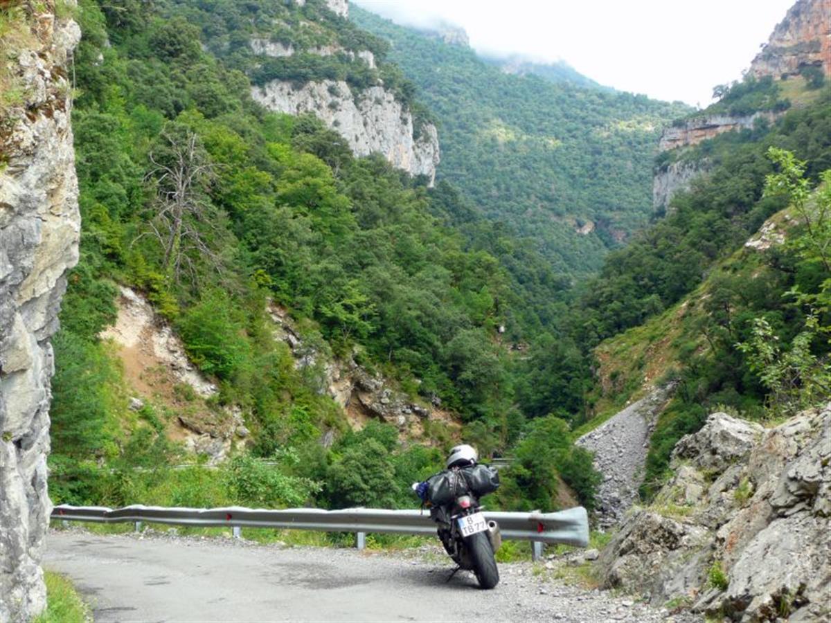 A nice loop over the pass into Spain and back to France. We revisit a pass we did two days before. We have blue sky all day in Spain and good weather in France too. Roads in Spain are phantastic compared to France and elsewhere in Europe. We have a lot of fun on big and smaller passes with little traffic.