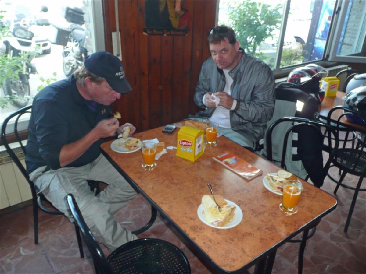 Paul and Chris having lunch in a little restaurant on the freeway