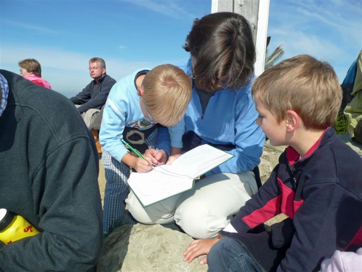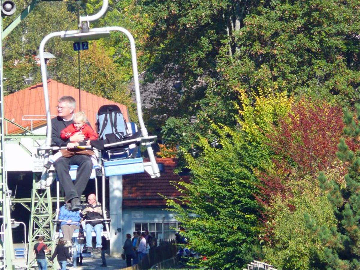 We go with a chair lift to our starting point. Patrick takes care of the little one, 2 year old Amelie