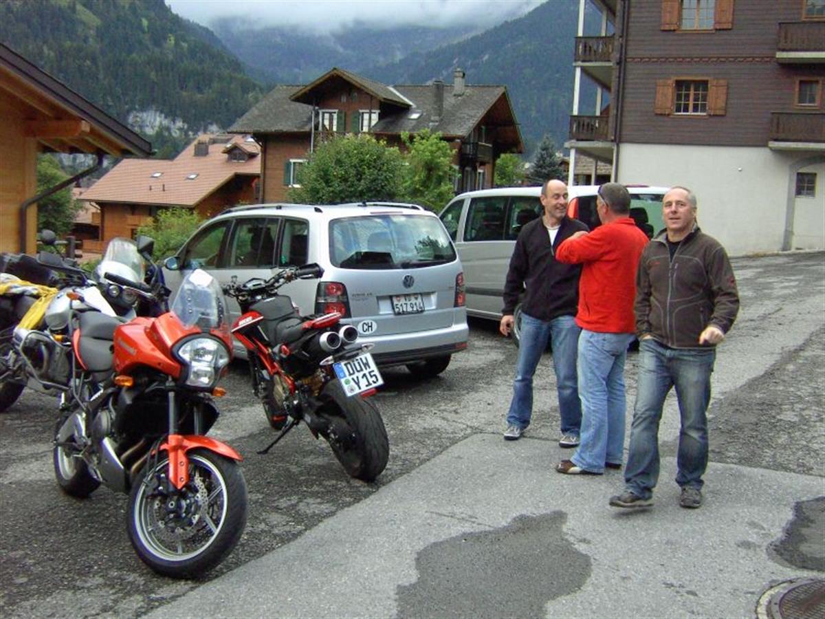 We picked up Matt and went from Schwabmünchen to the meeting point in Champery, Switzerland. Another ugly day for riding. Most of the time in pouring rain