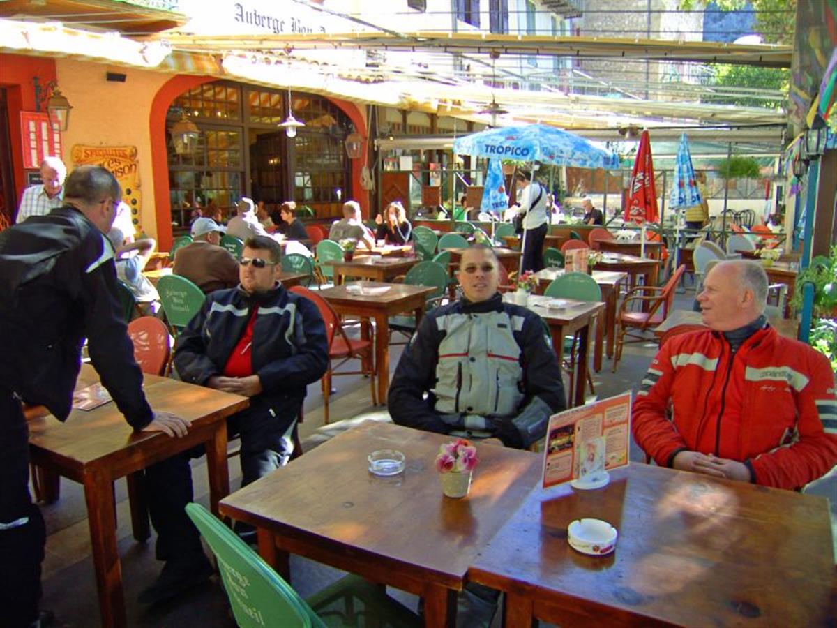 From M+F Tours we have Marcellus (to the left, facing Gert in his red Ducati jacket in the middle) and Harald (to the right)