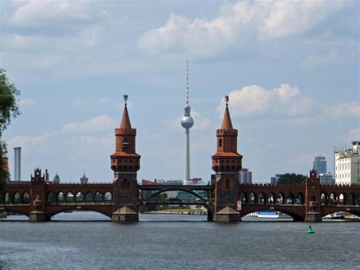 Molecule Men mark the border between three districts of Berlin Kreuzberg, Friedrichshain and Treptow