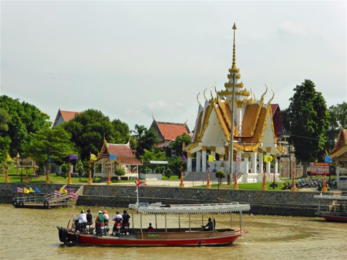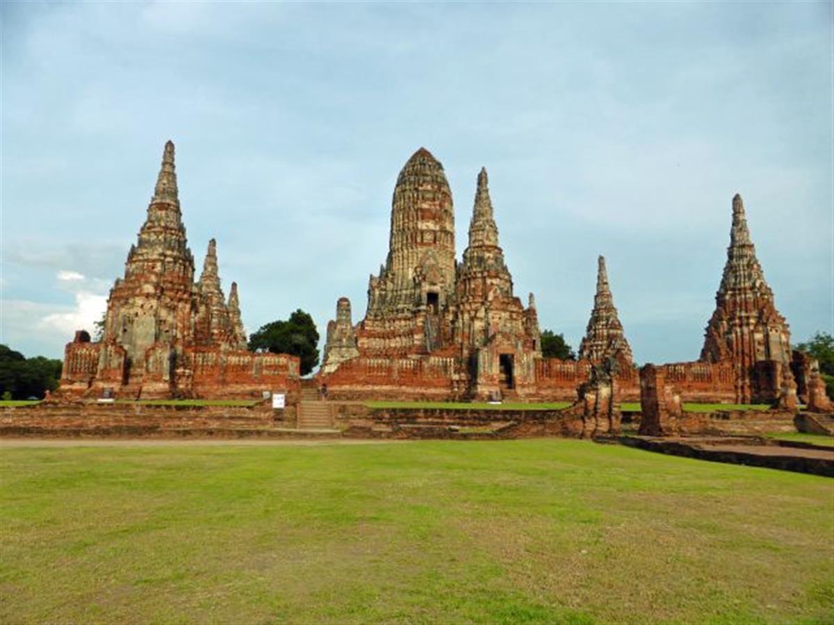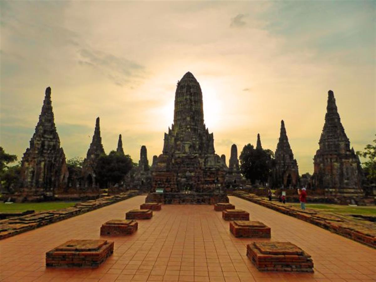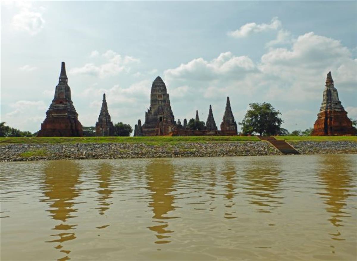 An old temple viewn from the river (Wat Chainwatthanaram). We will visit it later. The corncob shaped chedis are called prang