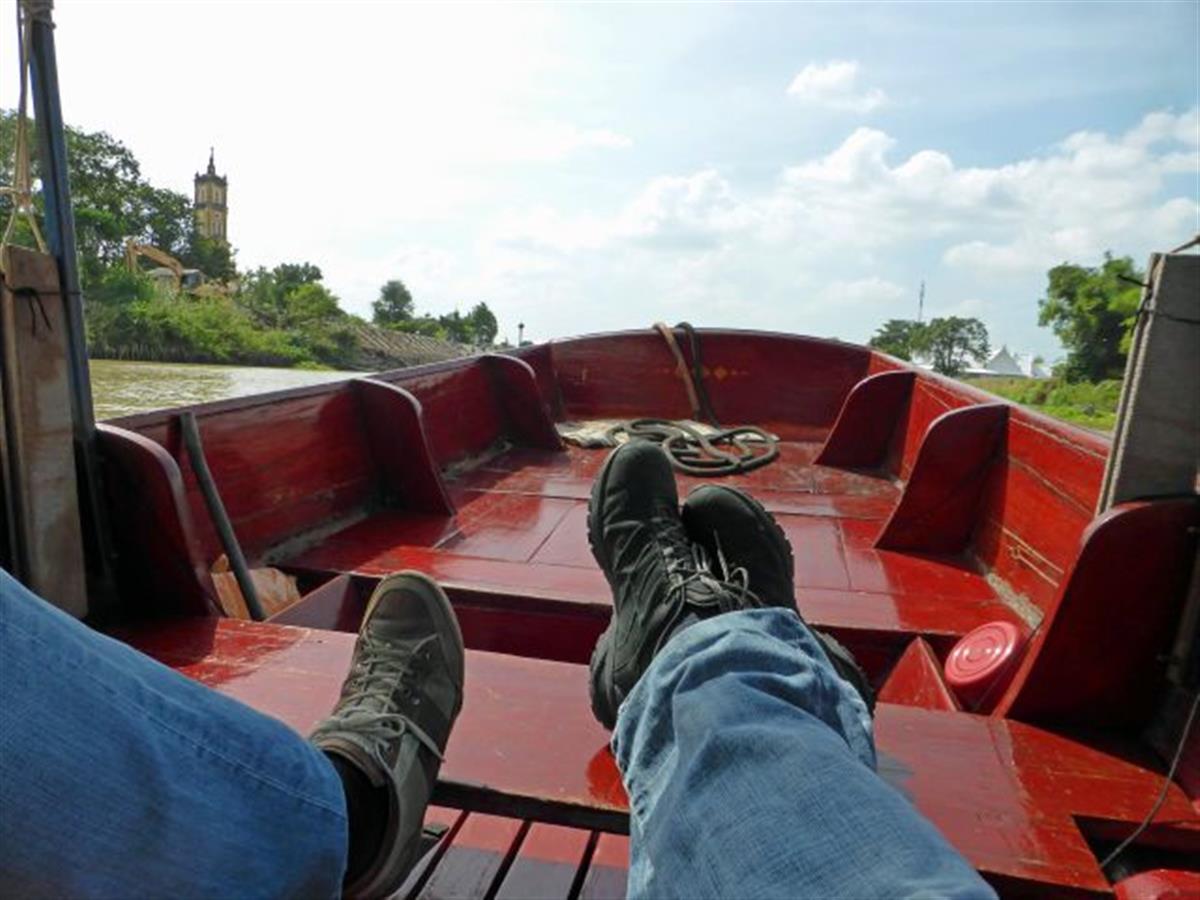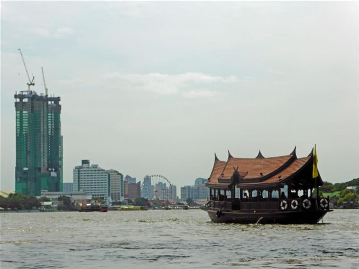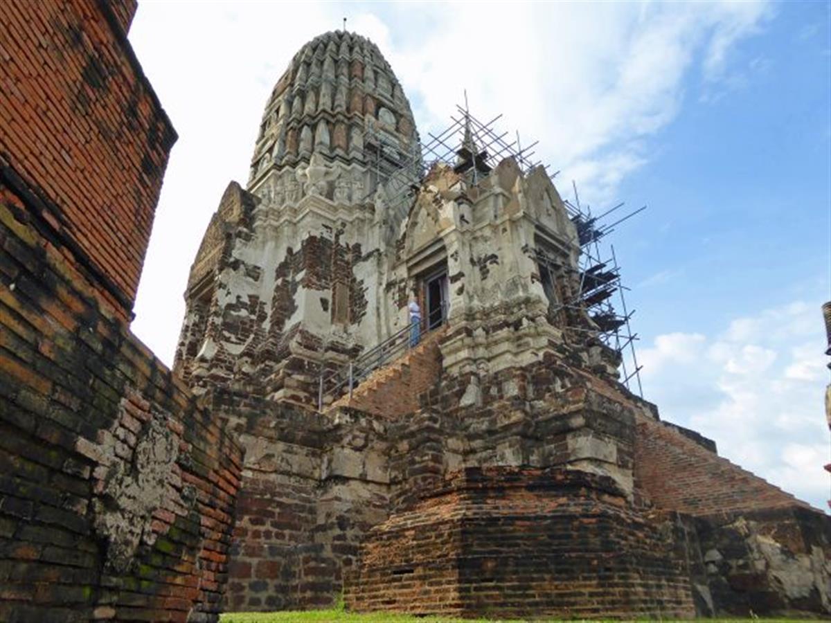 An old temple viewn from the river (Wat Chainwatthanaram). We will visit it later. The corncob shaped chedis are called prang