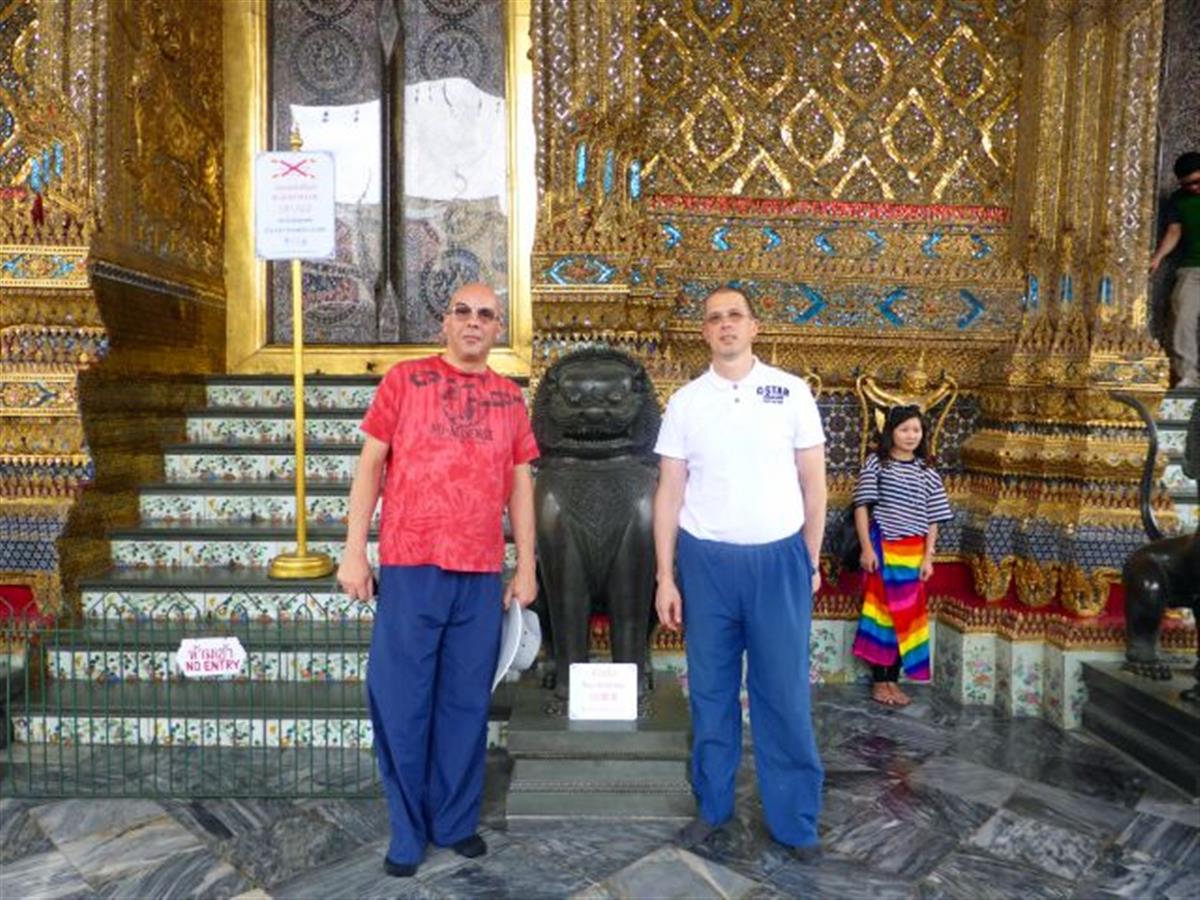 The Grand Palace is home of the Emerald Buddha, one of the main sanctuaries. You need to wear appropriate clothing. So long pants are required which you can borrow at the entrance.