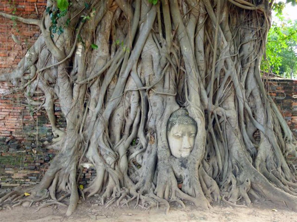 Temple Wat Mahathat displays the head of a buddha in a tree