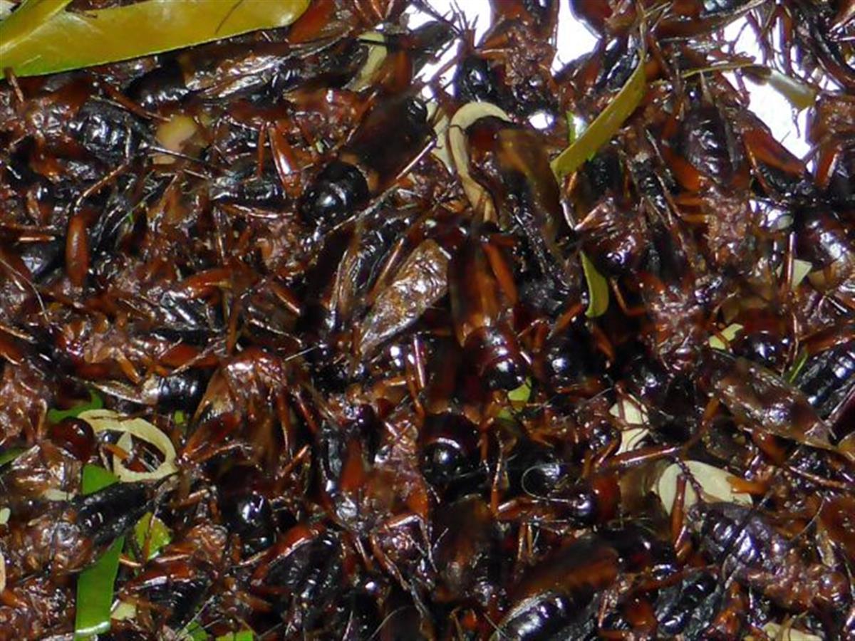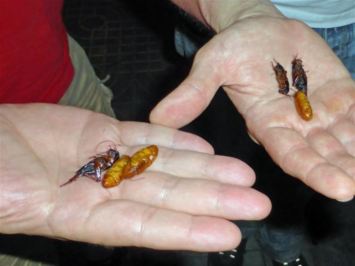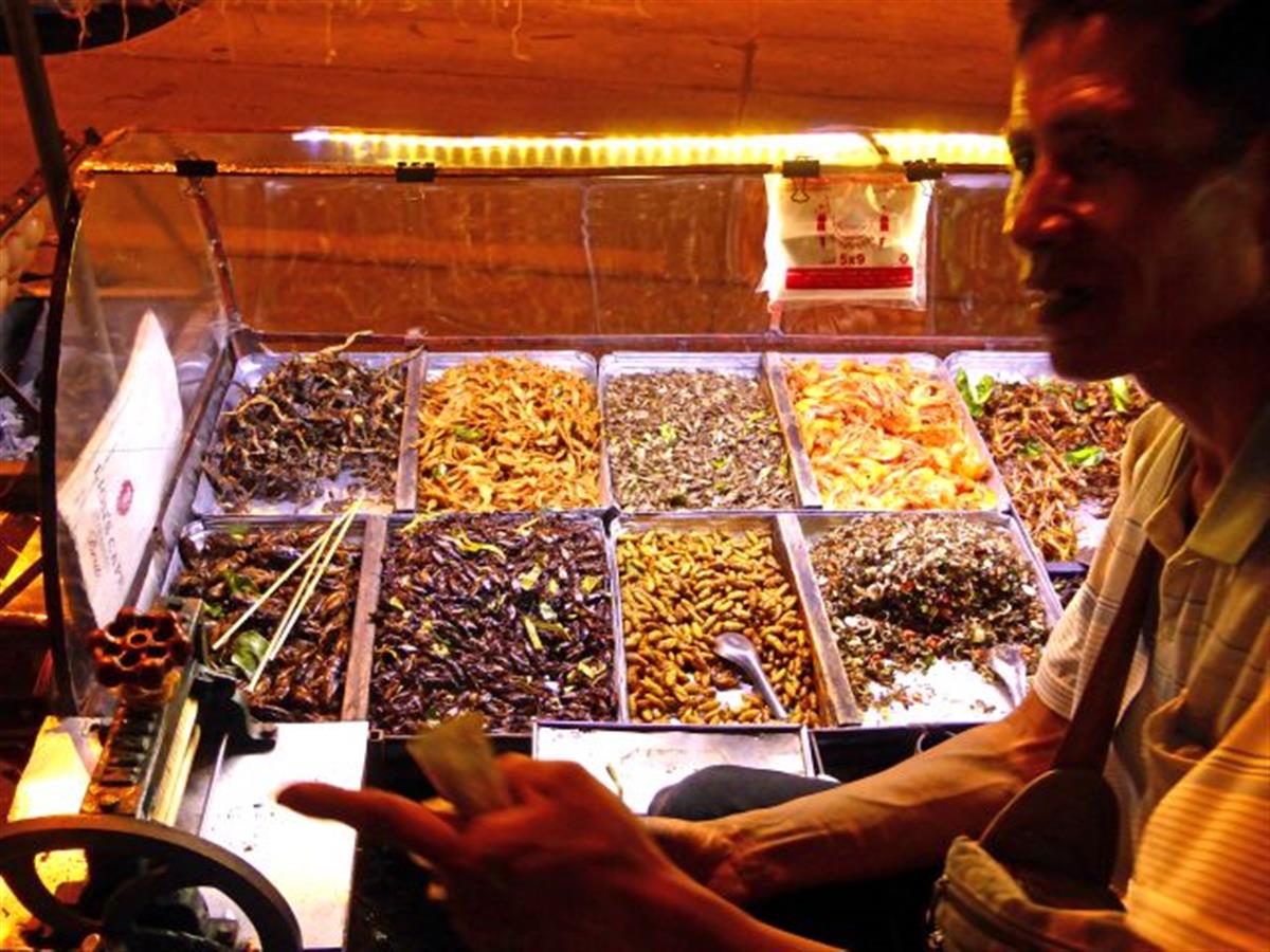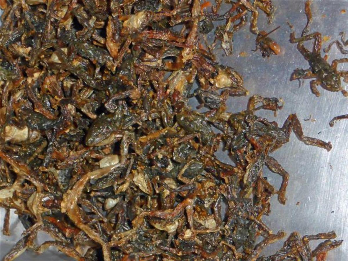 We found a dealer for insects and frogs. We tried the grubs and the crickets. Quite good.