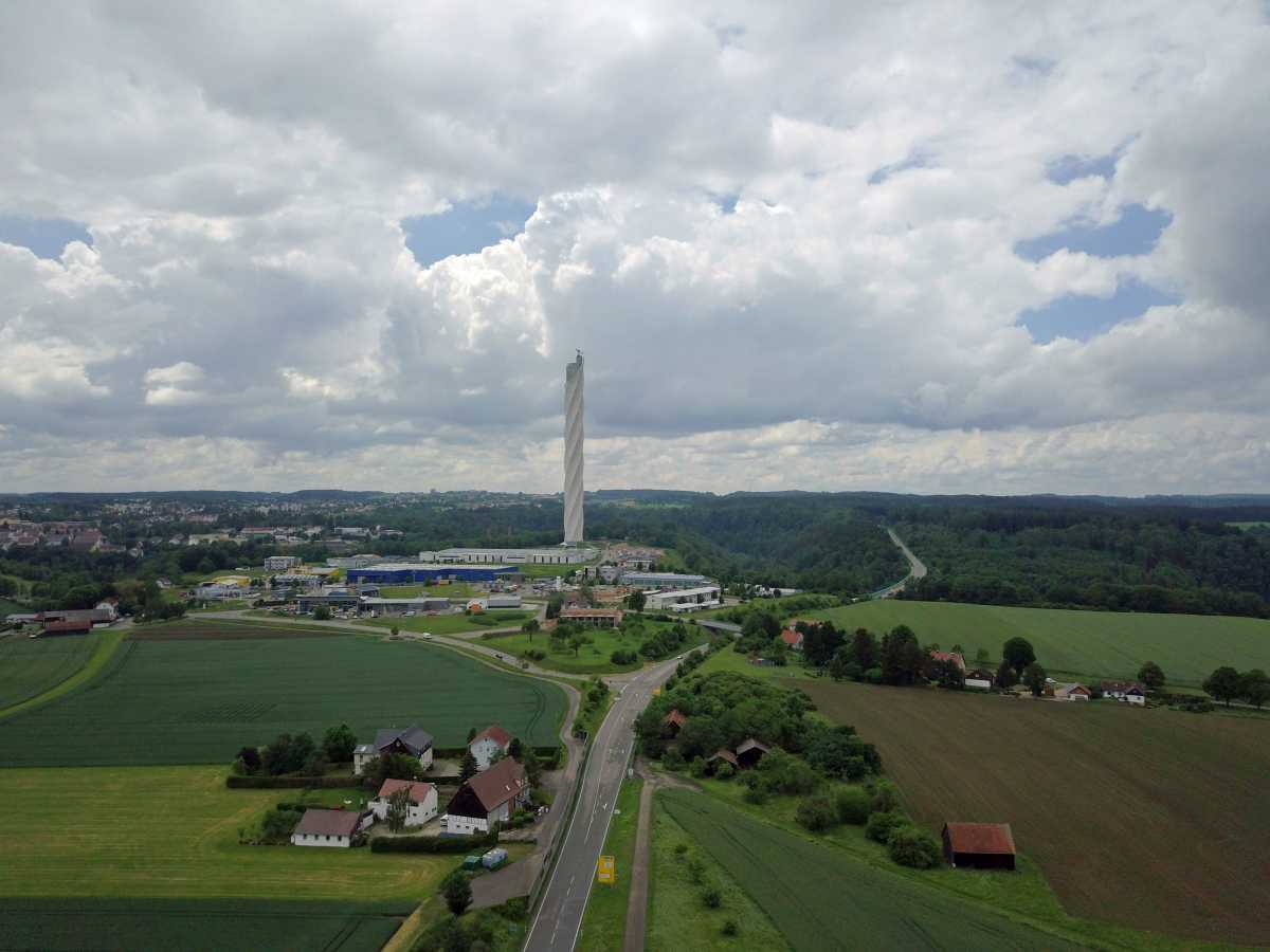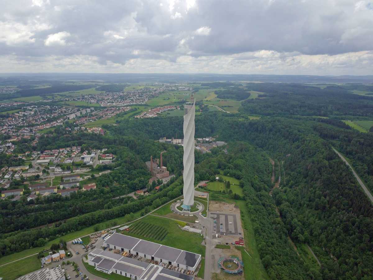 We visit the Thyssen-Krupp Elevator Test Tower in Rottweil. It is 807 feet high and has an observation deck at 761 feet elevation. It is the highest observation deck in Germany.