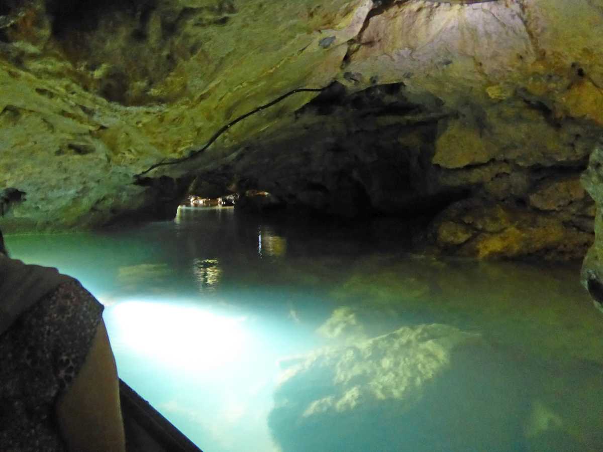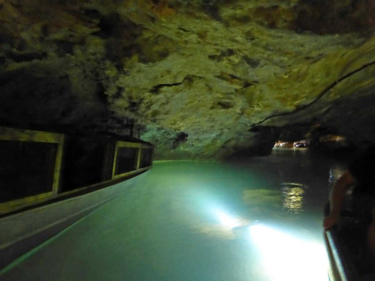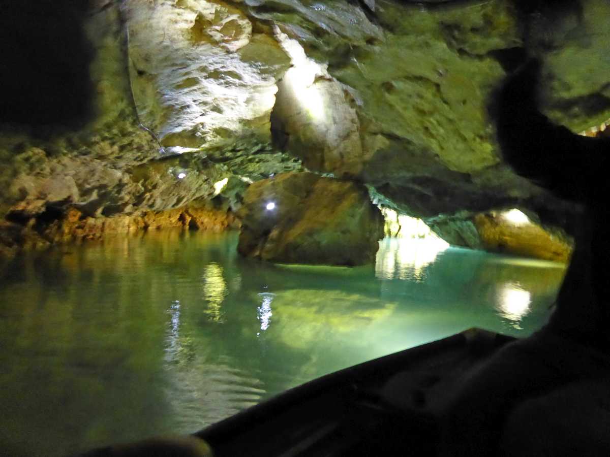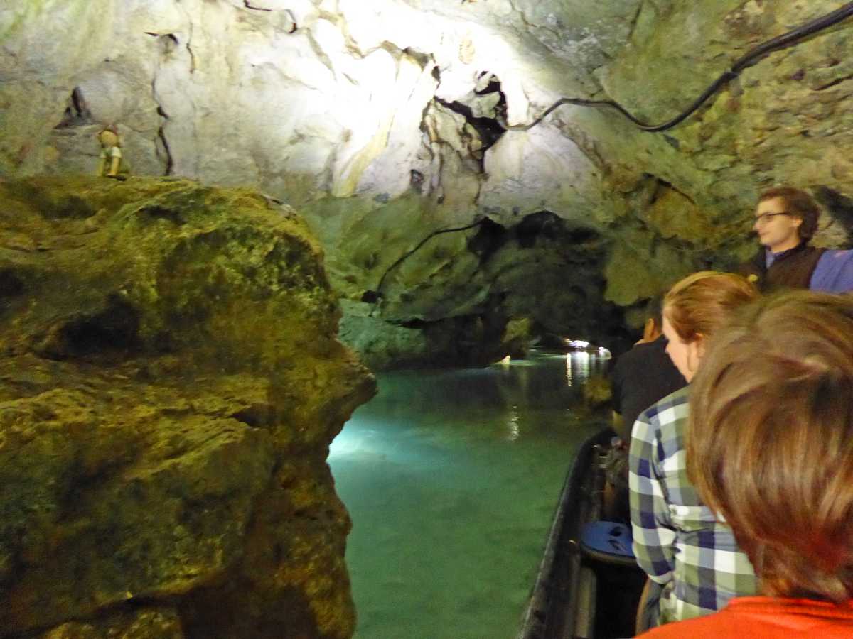 We visit Wimsener Höhle. You can go by boat into the cave.