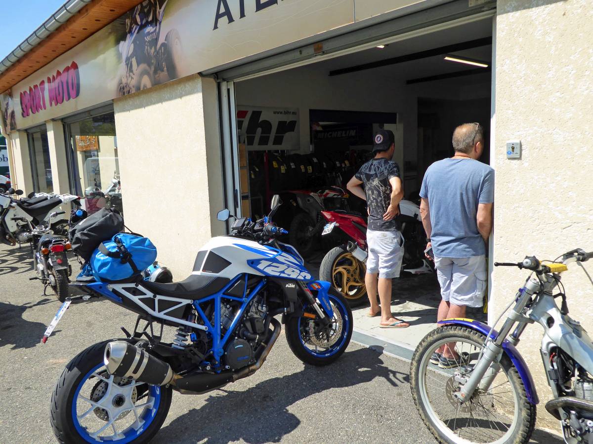 Some technical issues get in the way and made me stop at Sport Moto in Barcelonnette, at KTM Universal Ride in Grenoble, at KTM Motopabst in Düsseldorf and at KTM Motorradsport Schmitt in Binningen. Main issue was the break which did not work properly and was finally fixed in Düsseldorf
