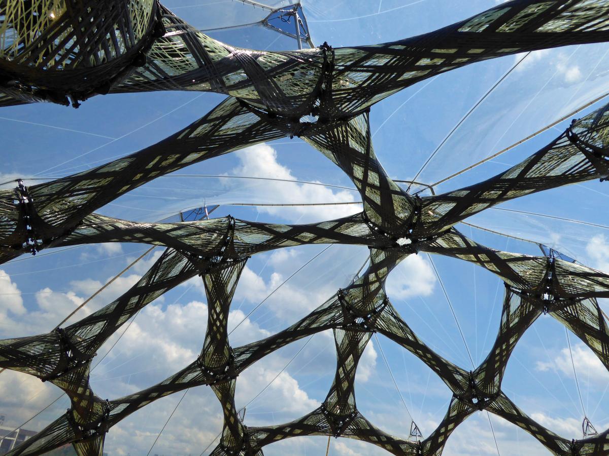 Bionic structures from carbon fiber and glas fiber enforced plastic. Each beam weighs about 160 pounds and can withstand 28 tons.