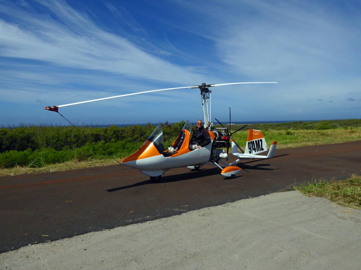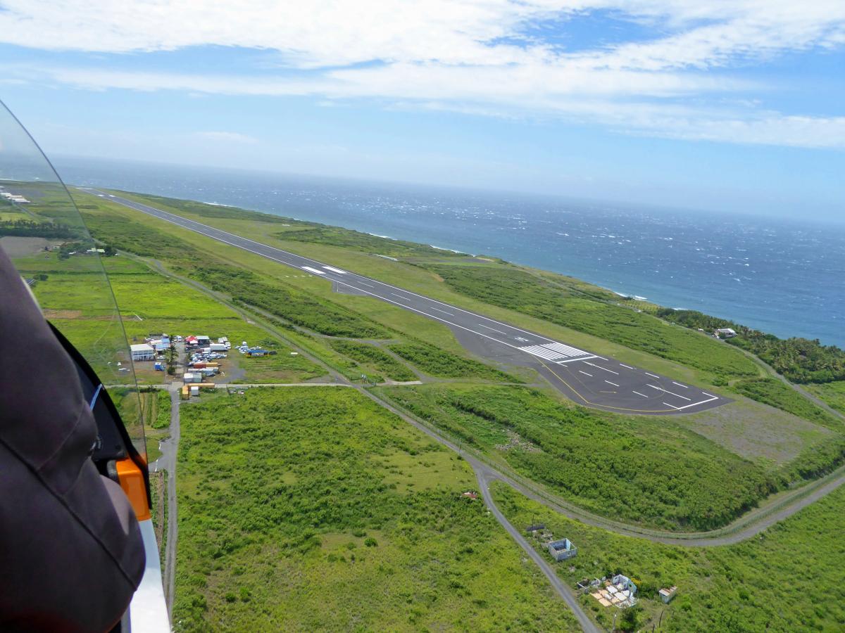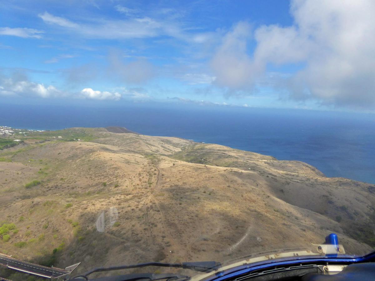 I fly with a gyrocopter with Zen Altitude ULM in Saint Piere (Pierrefond). The gyrocopter is an ELA 07 Cougar. Quite exciting. I have not done it before. We fly along the coast line as a circle around the volcano does not work due to the weather conditions.