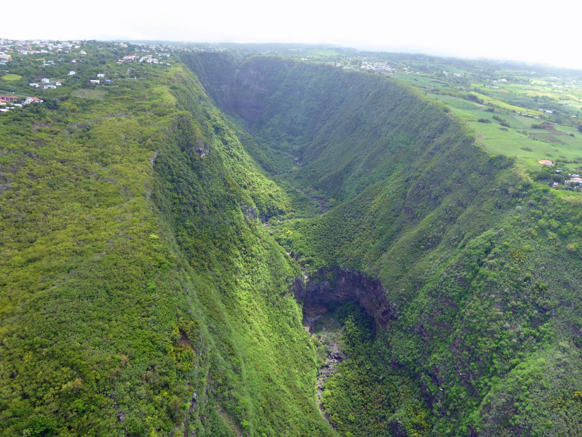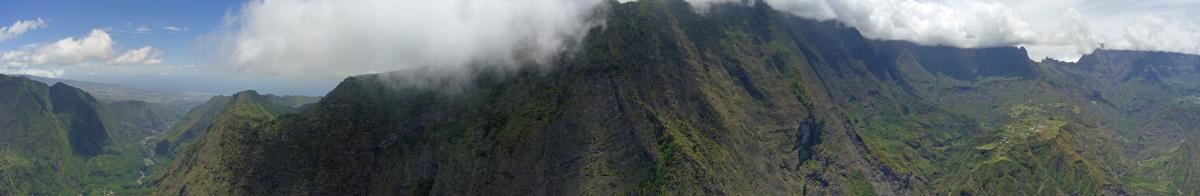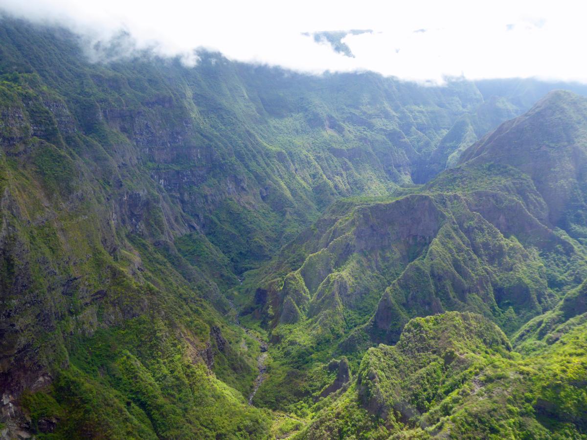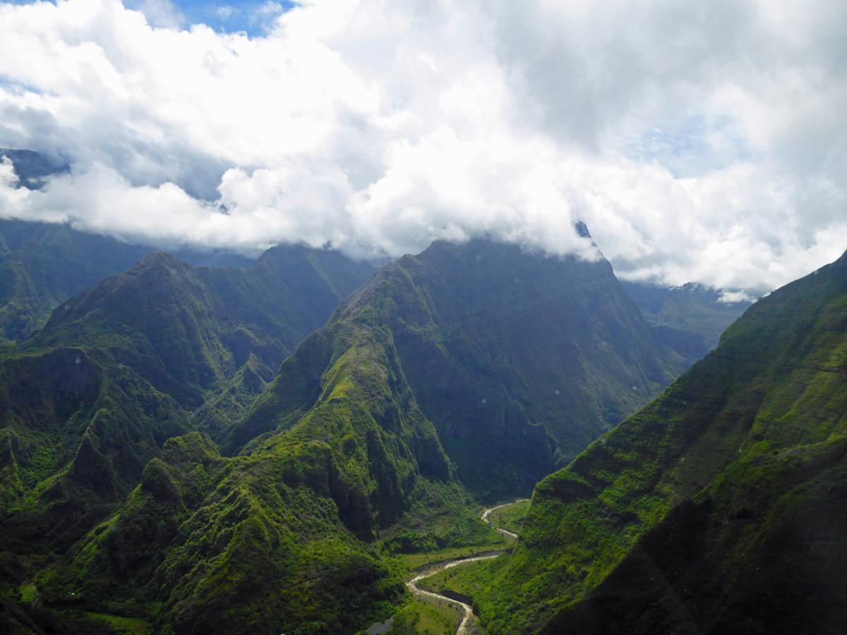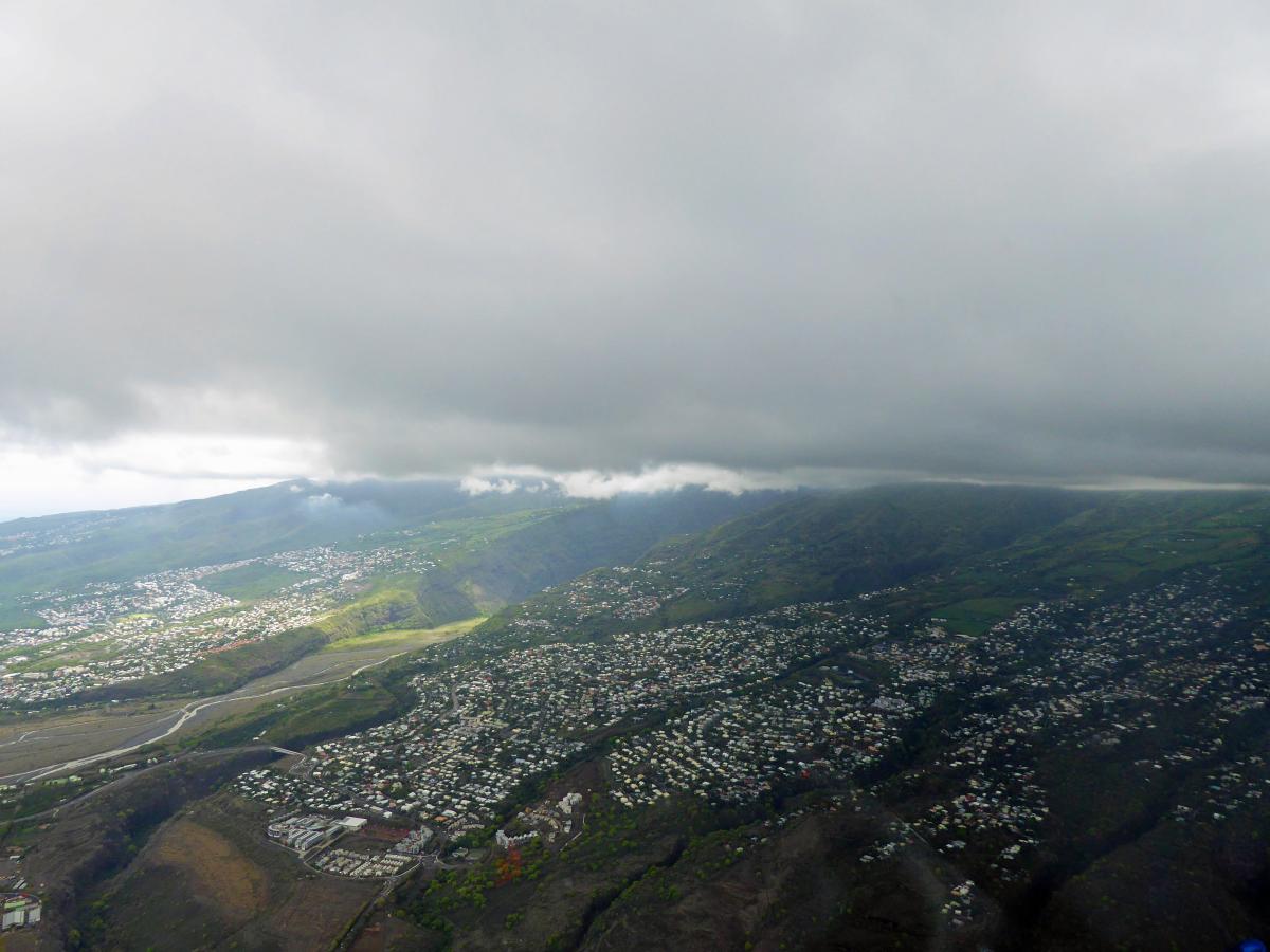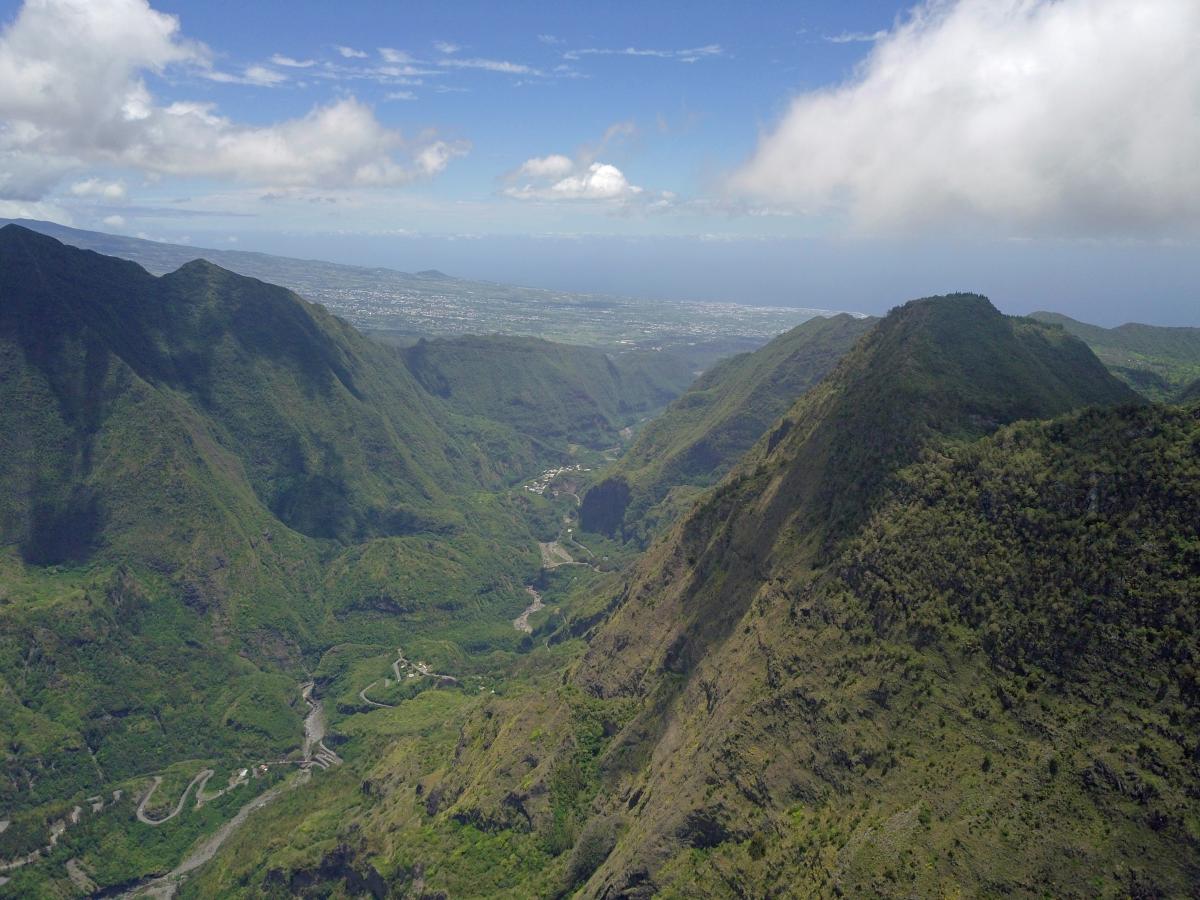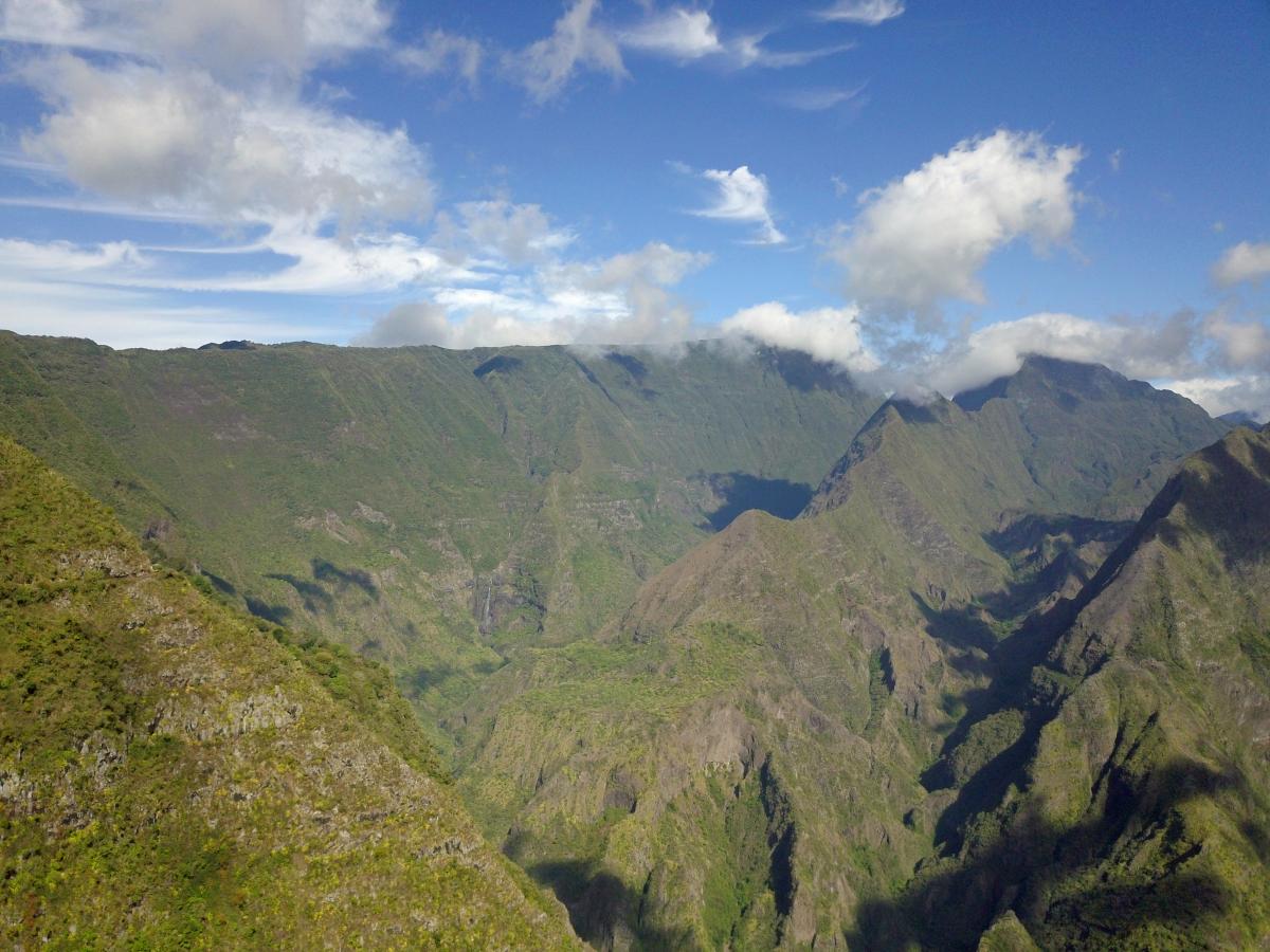 We fly with Helilagon. The weather prevents again a flight around the active volcano and we do a loop into Cirque de Mafate instead.