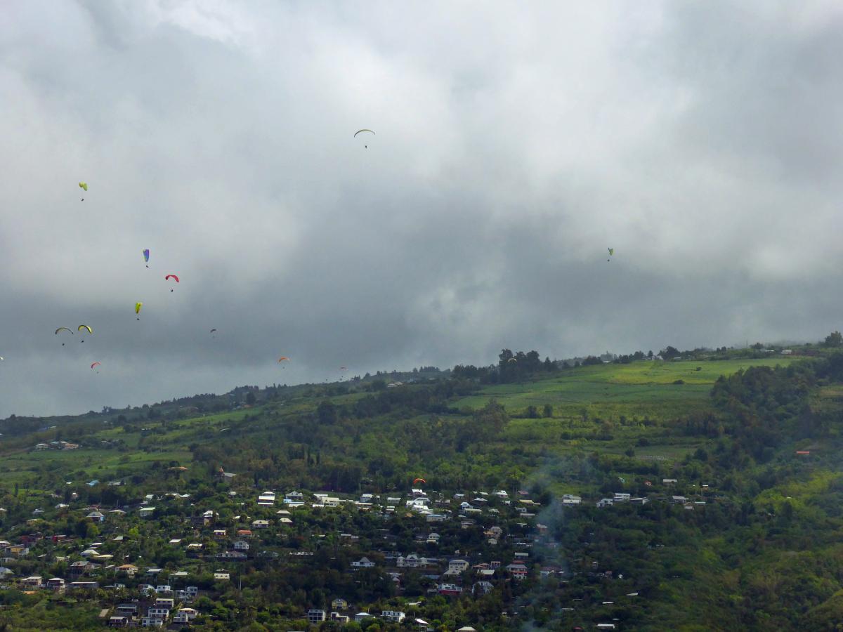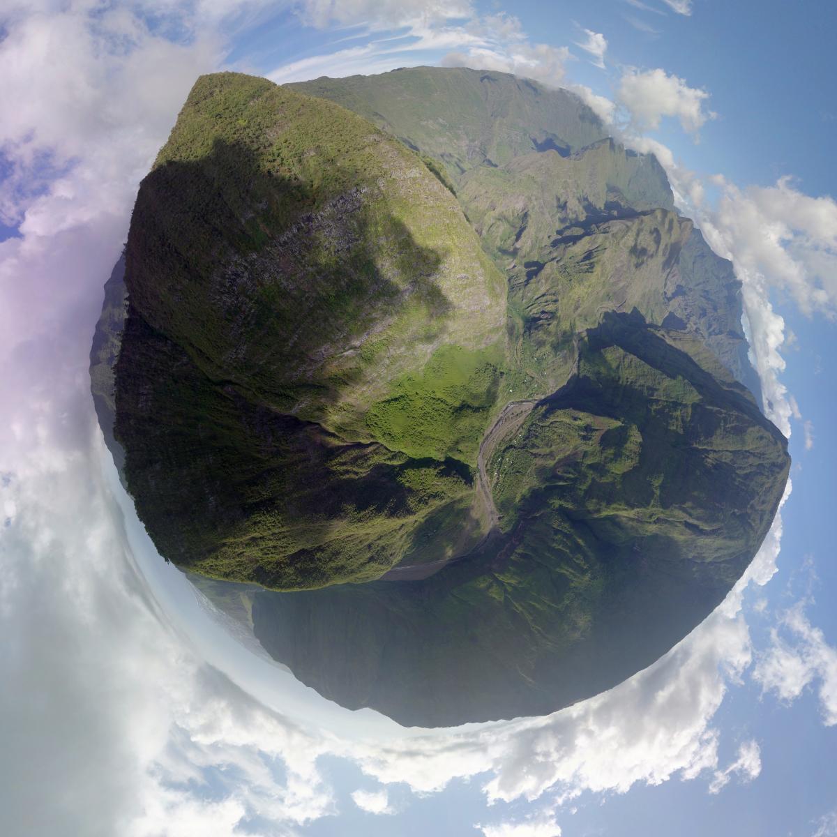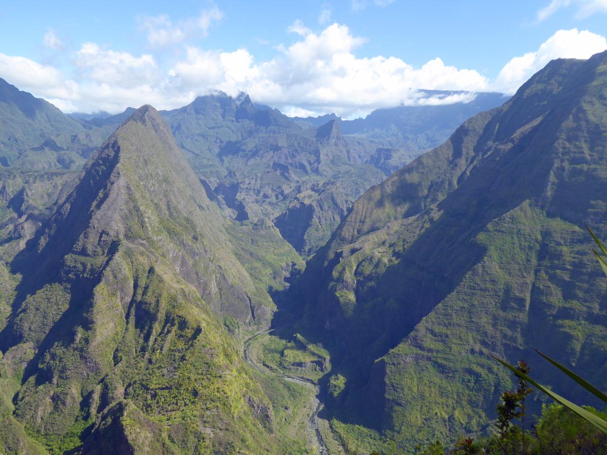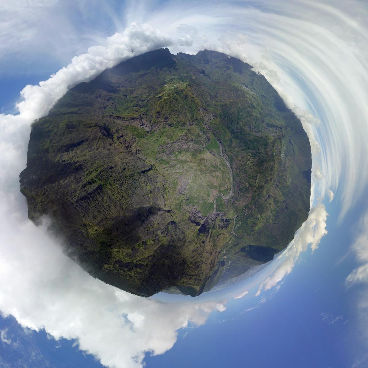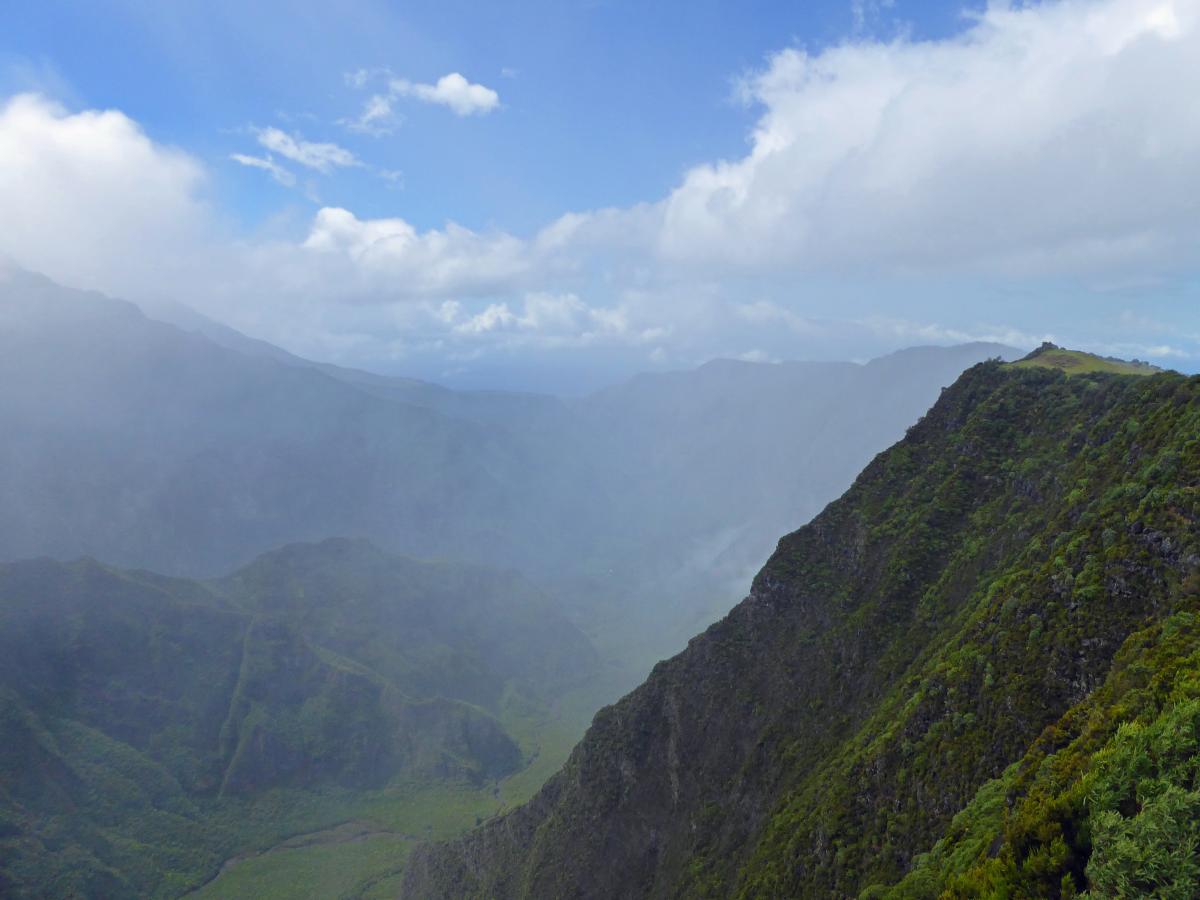 We fly with Helilagon. The weather prevents again a flight around the active volcano and we do a loop into Cirque de Mafate instead.