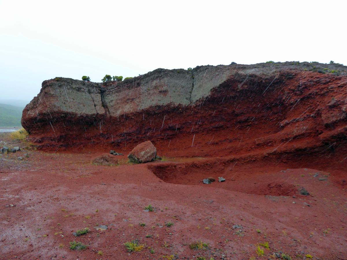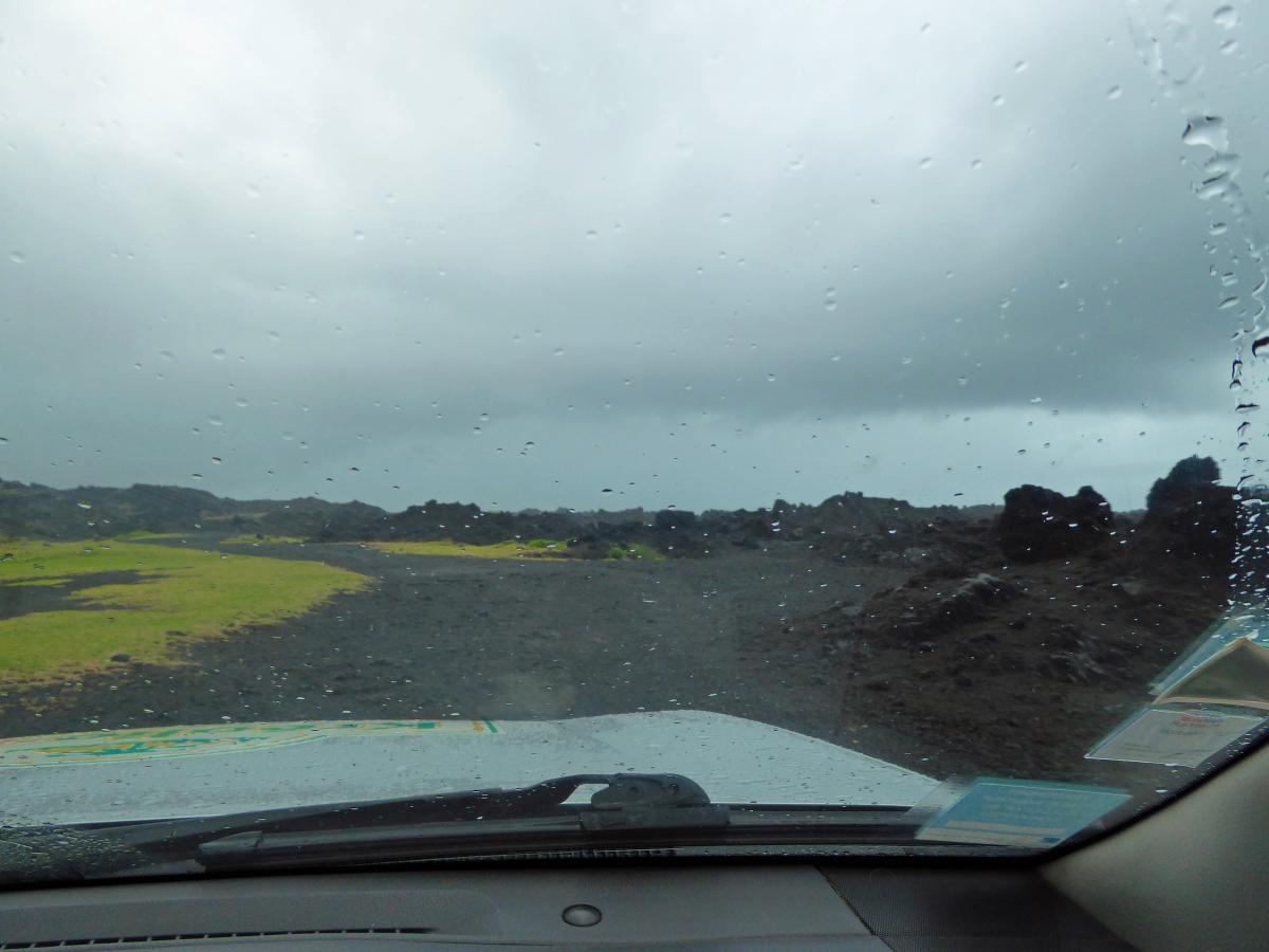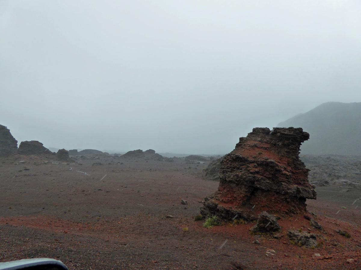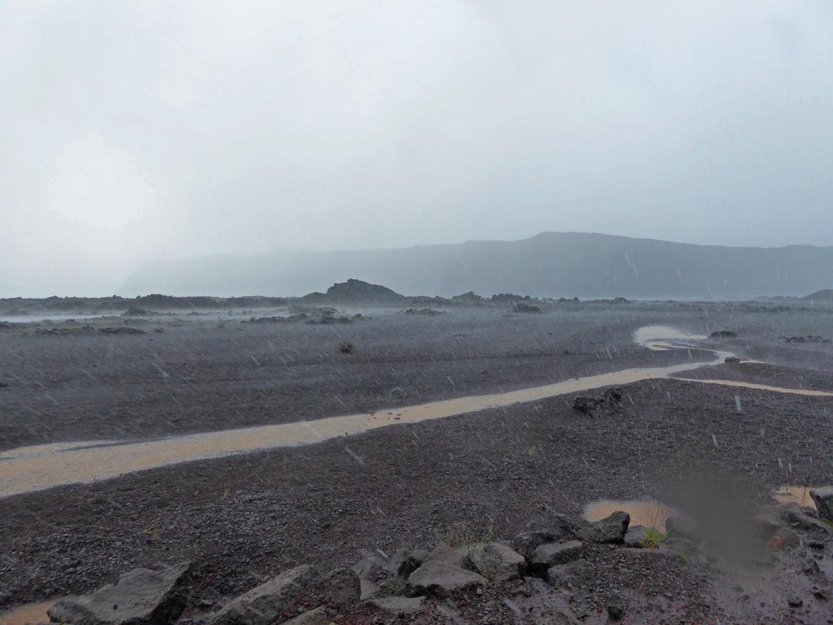 We want to go to the active volcano Piton de la Fournaise. The volcano is located on the Eastern coast and it is quite rainy there. An in almost 9000 ft of elevation it will get cold too.