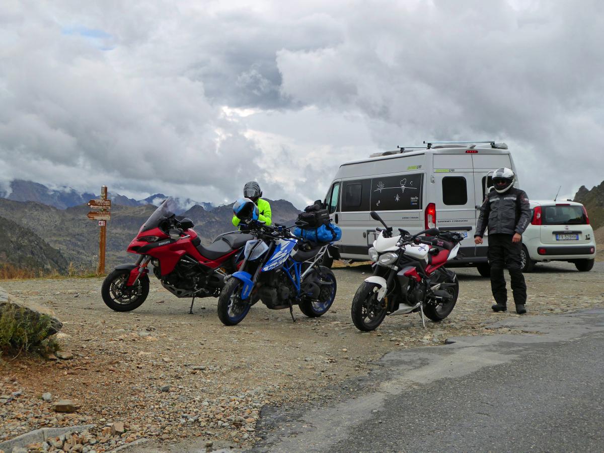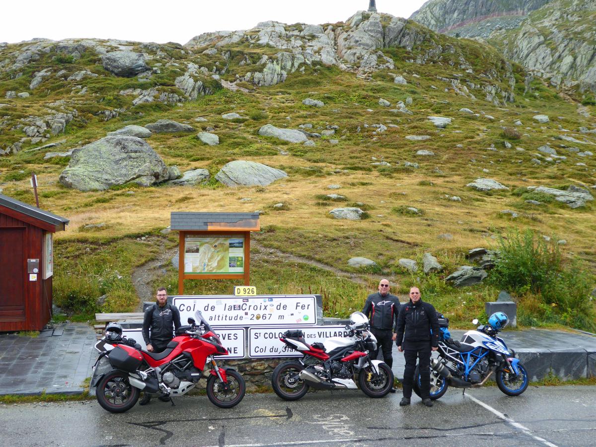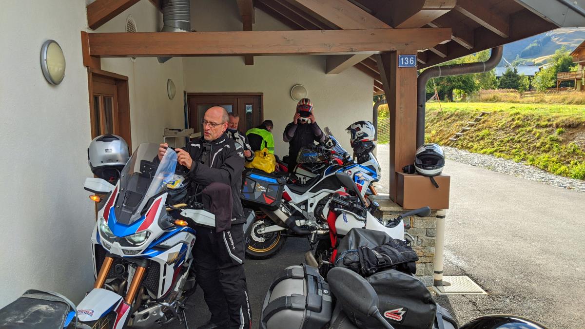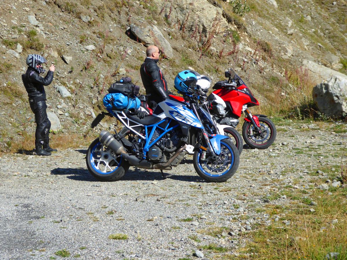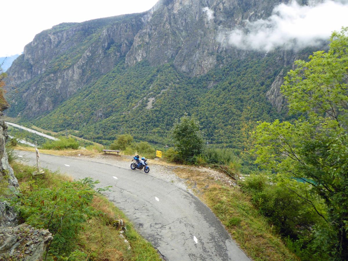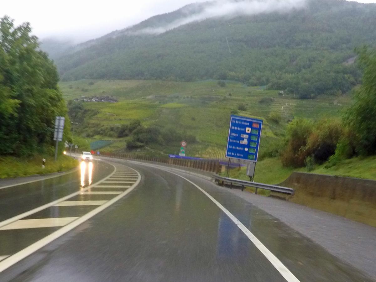 The rain falls in sheets. While the group wants to wait for some weather enhancement I decide to go throught the rain to the next destination. The forecast reports snow on Grand St.-Bernard and we adjust the route accordingly. But it drops Colle San Carlo, Petit St.-Bernard and the brilliant passes Cormet du Roselend and Col du Pré. And we will miss Italian coffee and lunch on top of Col du Pré. Maybe again next year.