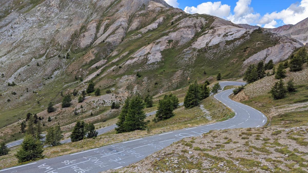 It is still humid in the morning and we need to bump through the clouds on the way to the Col de la Croix de Fer. Later it becomes really sunny. Highlights of the day are the big passes Col d'Izoard, Col de la Lombarde and Col de la Bonette.