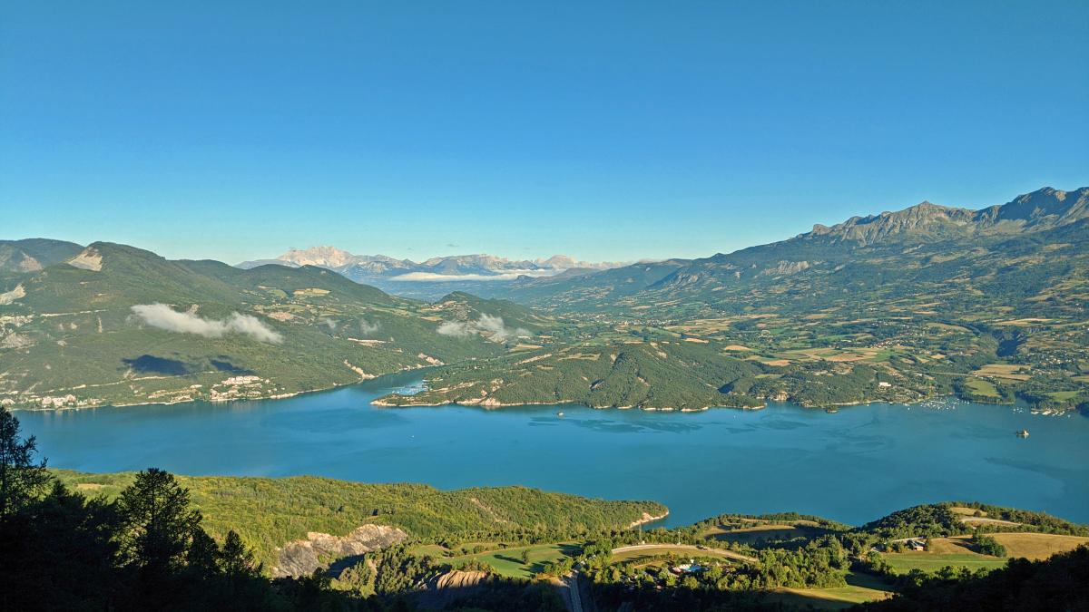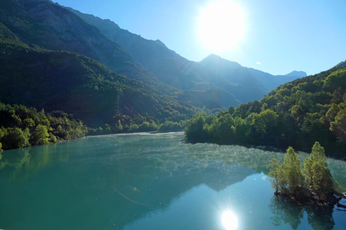 Ray sun again. We drive north again and one highlight is the Lac de Serre-Ponçon We reach Col du Festre. Then the Tour de France stops us and we have to find a new route.