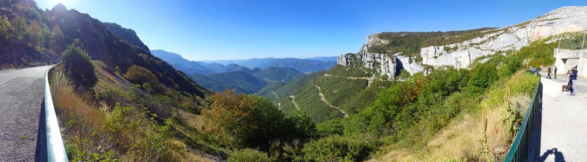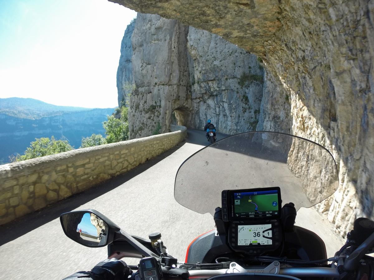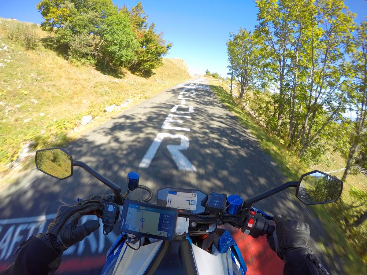 We proceed through the Vercors. The weather remains sunny. The passes are not so high anymore but still very nice to ride. Highlight in the evening is the view from Mont du Chat.