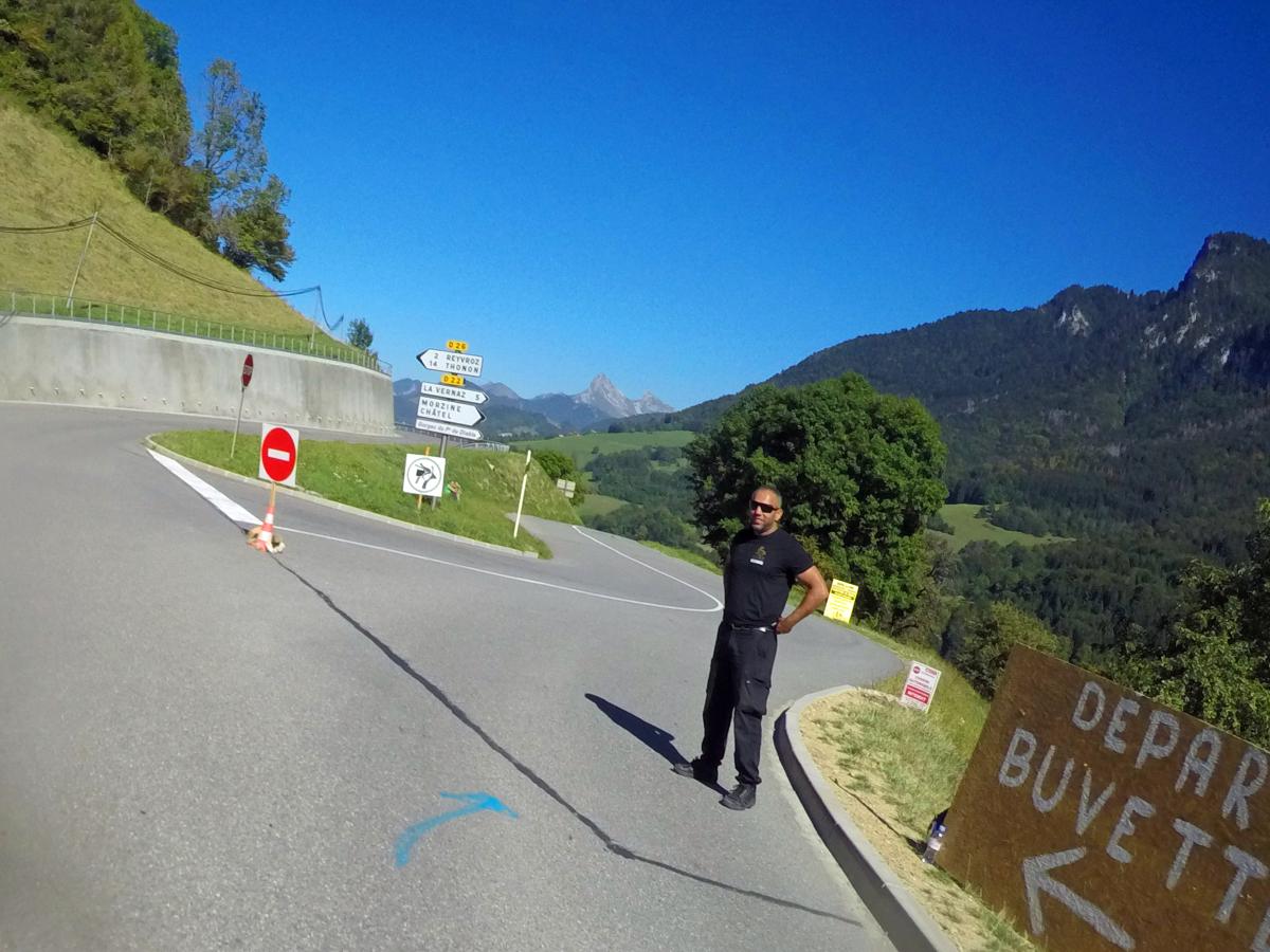 It goes back to Champéry. But before that, Le Revard, Col du Grand Colombier and Col de la Croisette are waiting for us. Later the rally Mont Blanc Morzine will get in our way. Three times we have to change the route and we have to take a big detour to get back to Champéry.